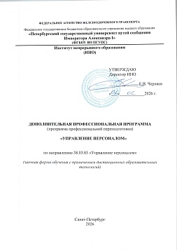 Управление персоналом : программа профессиональной переподготовки / . — Санкт-Петербург : ПГУПС, 2026. — 68 с. — Текст : электронный // УМЦ ЖДТ : электронная библиотека. — URL: https://umczdt.ru/books/1283/299911/ (дата обращения 17.04.2026). — Режим доступа: по подписке.