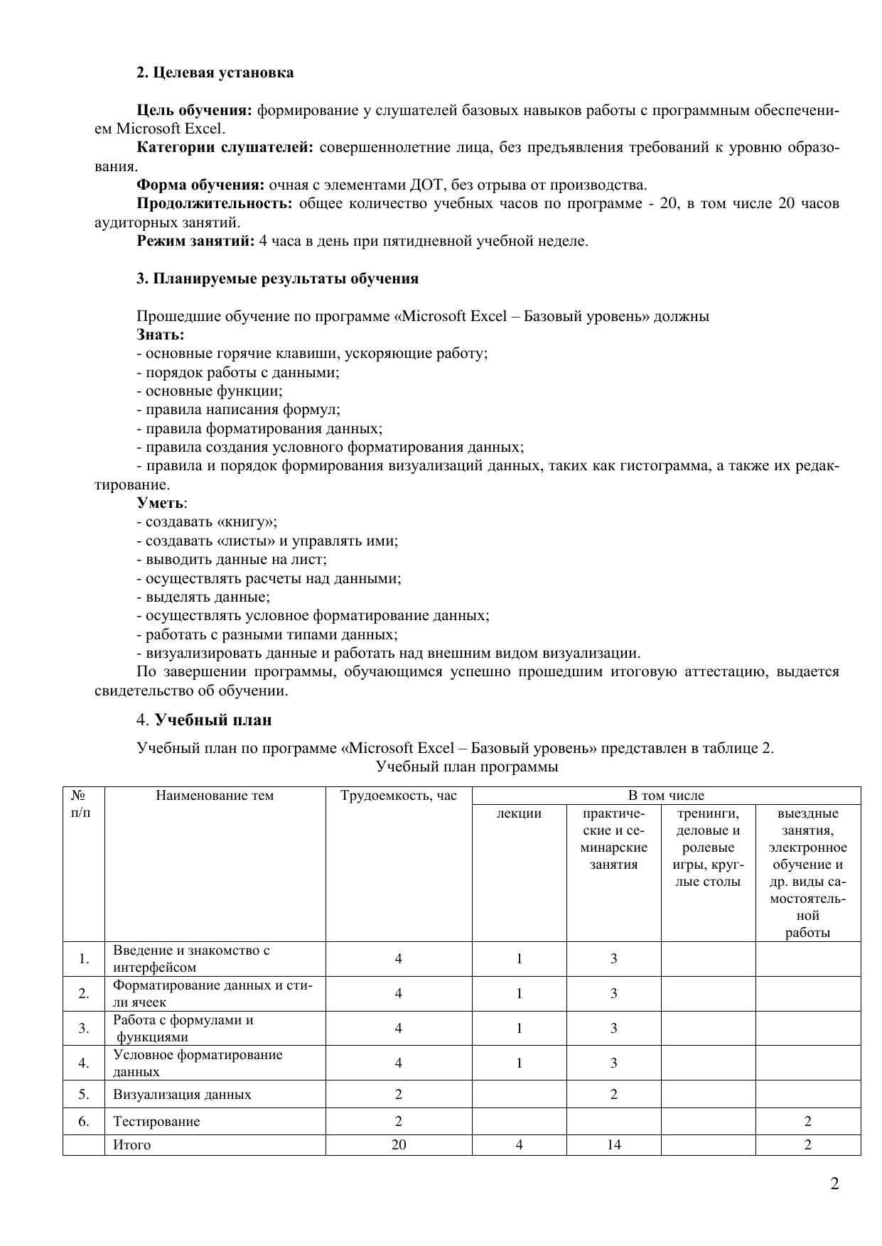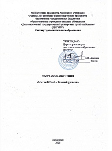 Категории слушателей: совершеннолетние лица, без предъявления требований к уровню образования. Форма обучения: очно-заочная, 20 часов. Ссылка на программу на сайте разработчика: https://ido-dvgups.ru/courses/microsoft-excel-bazovyj-uroven