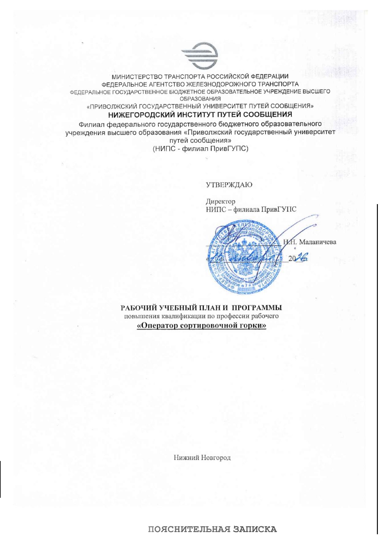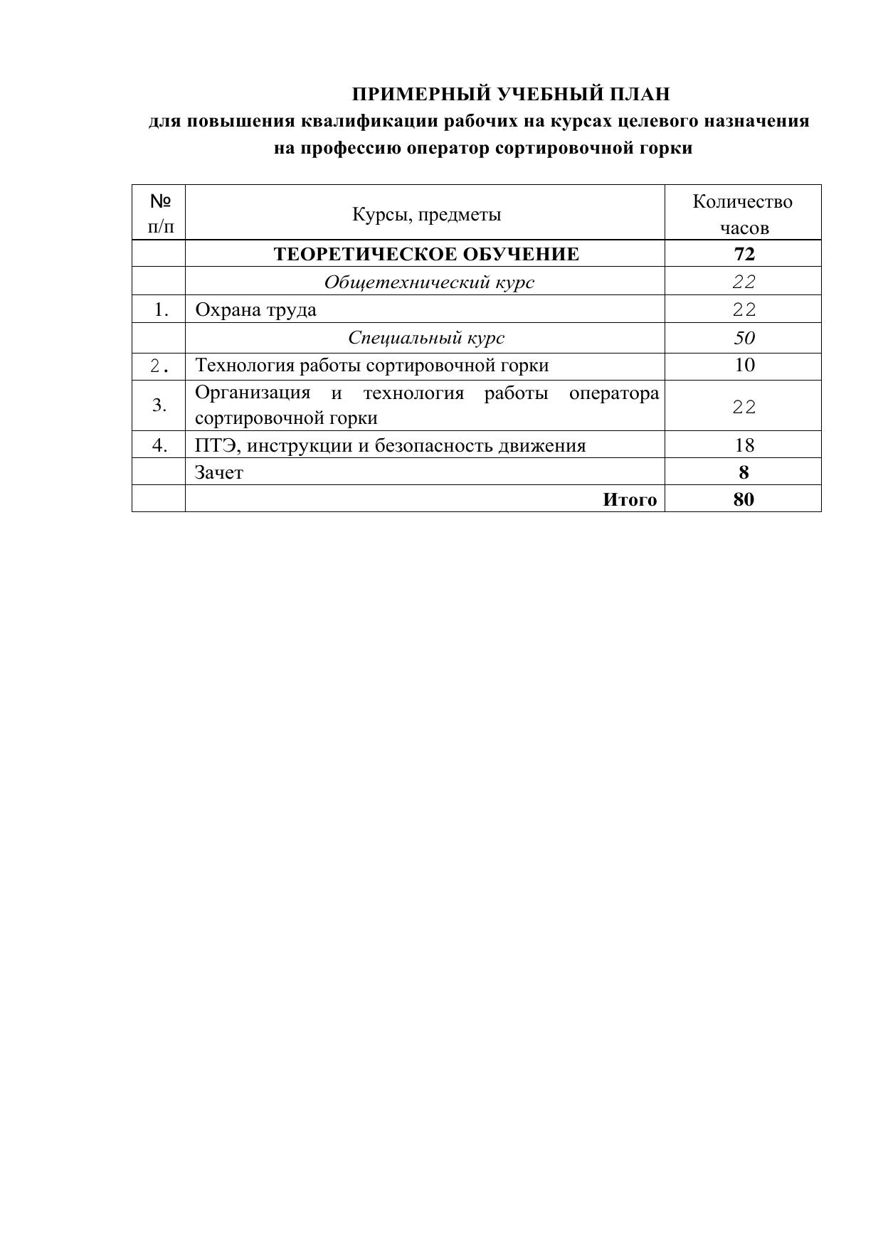 Категория слушателей: лица имеющие профессию оператор сортировочной горки: очная, очно-заочная, 80 часов. Ссылка на программу на сайте разработчика:
