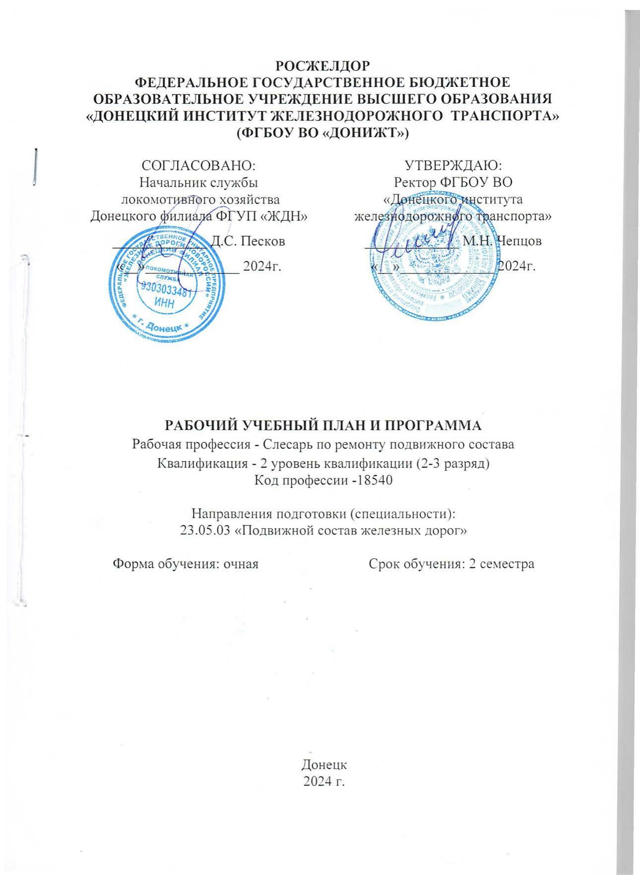 Слесарь по ремонту подвижного состава : программа профессиональной подготовки / . — Донецк : ДонИЖТ, 2024. — 57 с. — Текст : электронный // УМЦ ЖДТ : электронная библиотека. — URL: https://umczdt.ru/books/1386/299683/ (дата обращения 12.03.2026). — Режим доступа: по подписке.