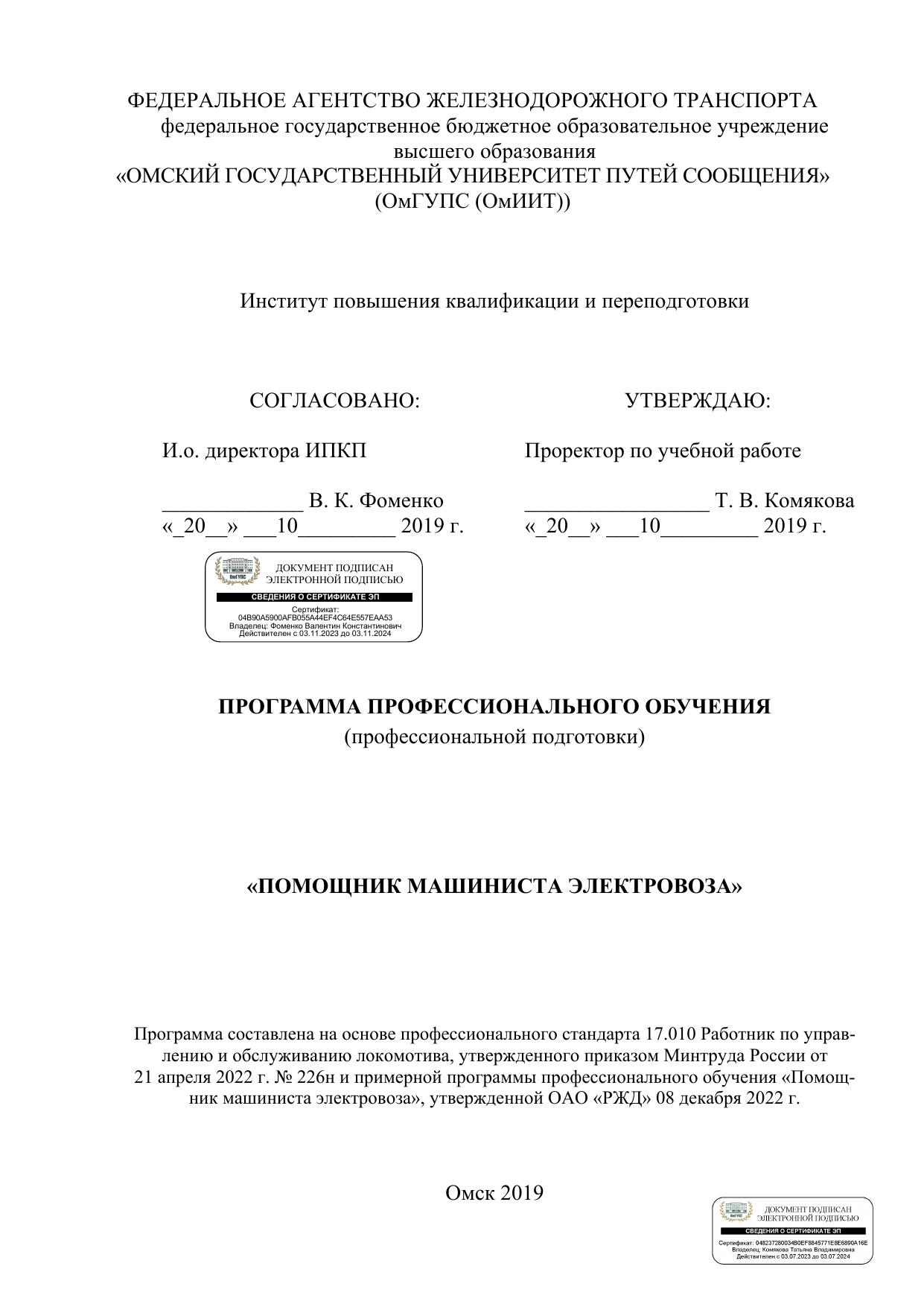 Помощник машиниста электровоза : программа профессиональной подготовки / . — Омск : ОмГУПС, 2019. — 72 с. — Текст : электронный // УМЦ ЖДТ : электронная библиотека. — URL: https://umczdt.ru/books/1386/299731/ (дата обращения 15.04.2026). — Режим доступа: по подписке.