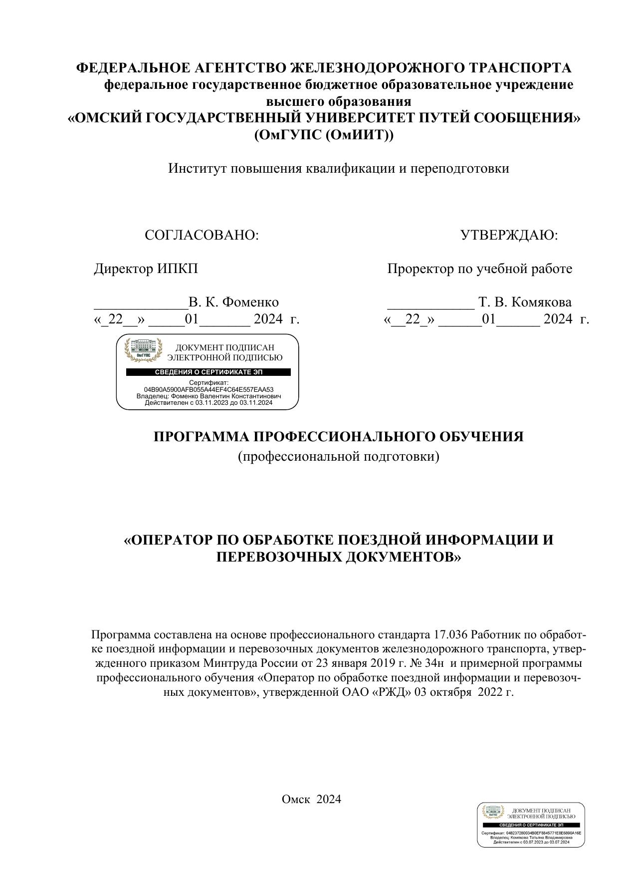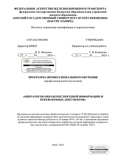 Оператор по обработке поездной информации и перевозочных документов : программа профессиональной подготовки / . — Омск : ОмГУПС, 2024. — 39 с. — Текст : электронный // УМЦ ЖДТ : электронная библиотека. — URL: https://umczdt.ru/books/1386/299737/ (дата обращения 12.03.2026). — Режим доступа: по подписке.