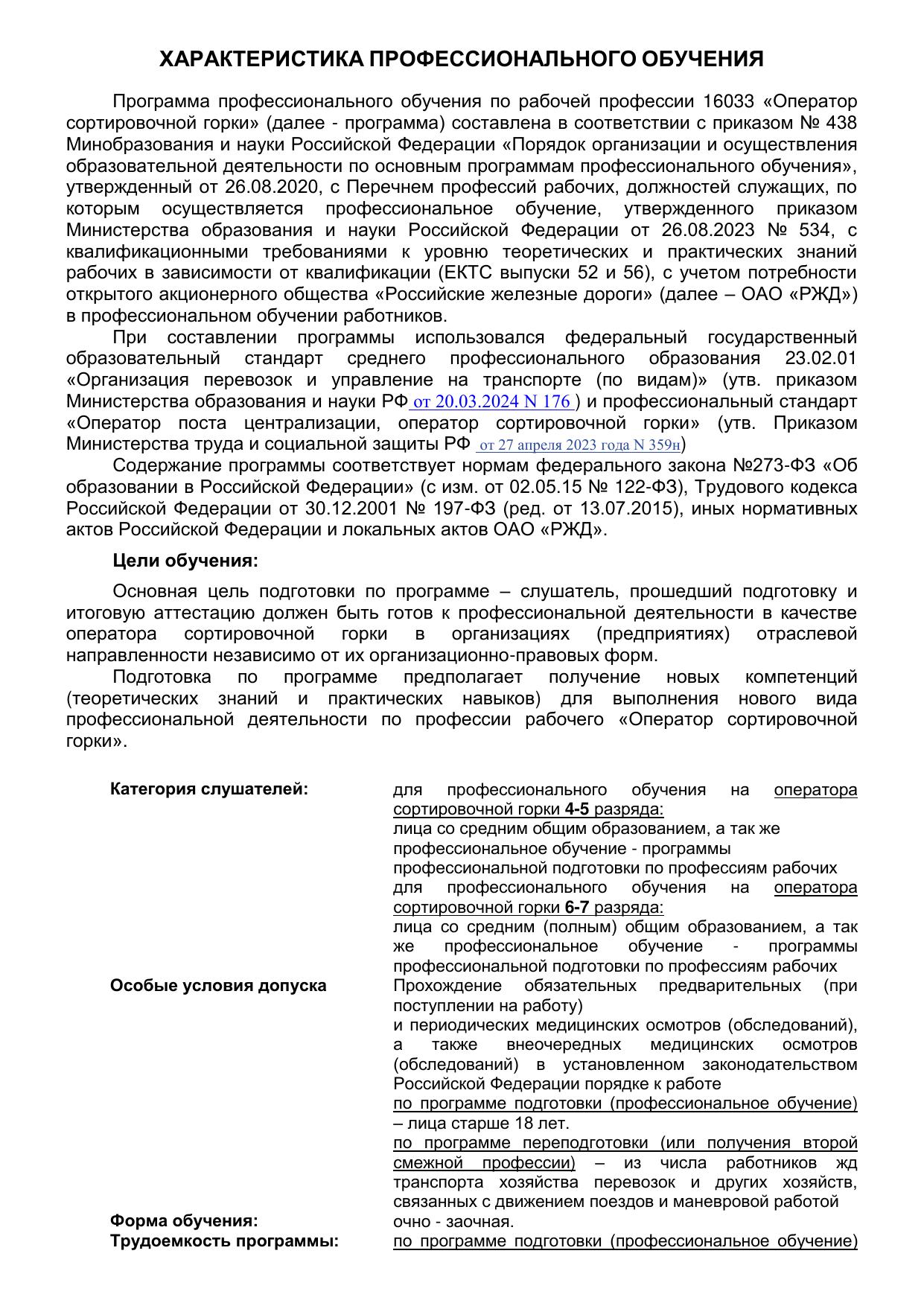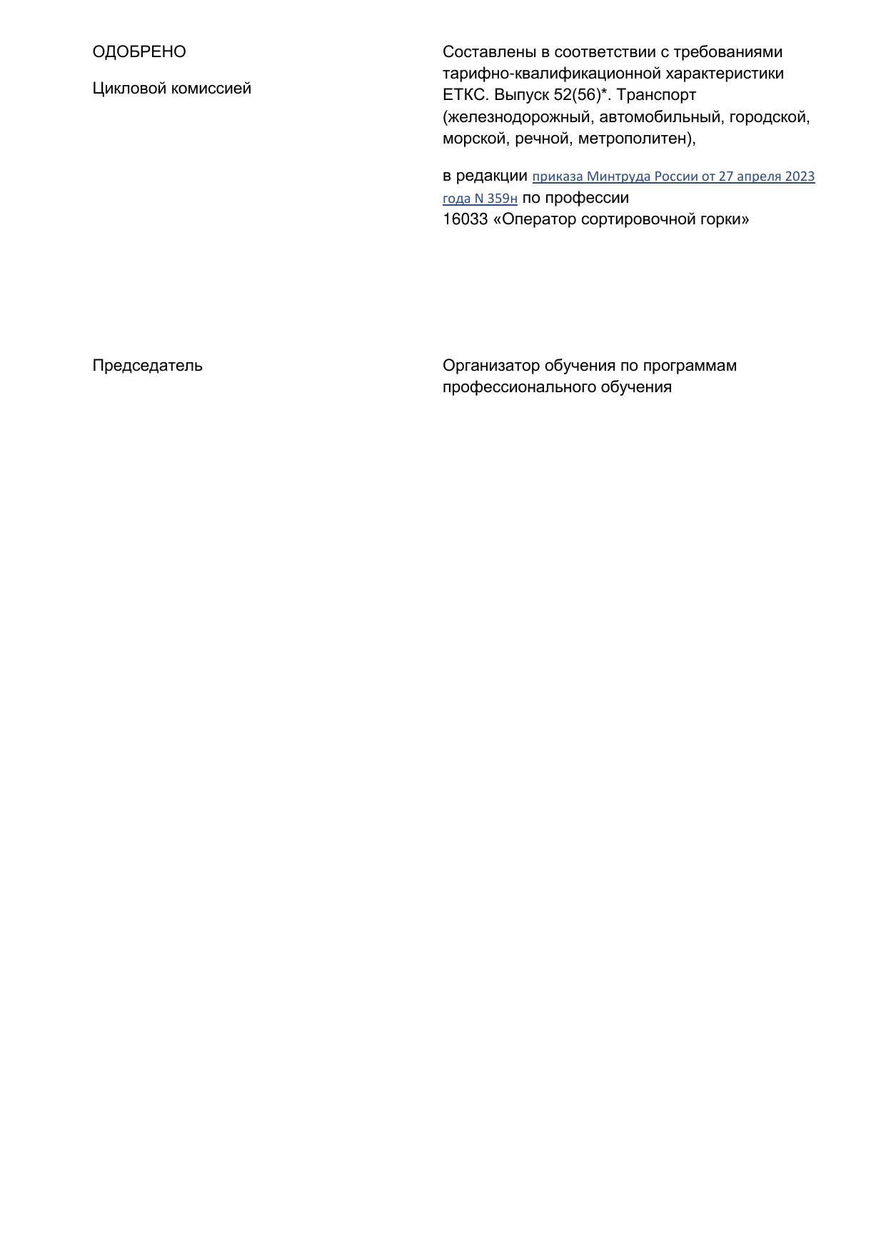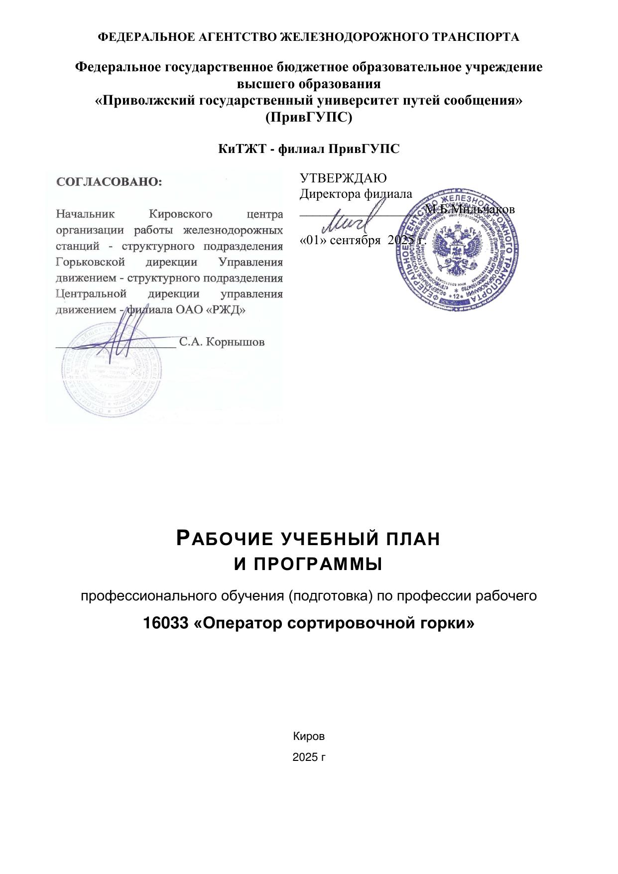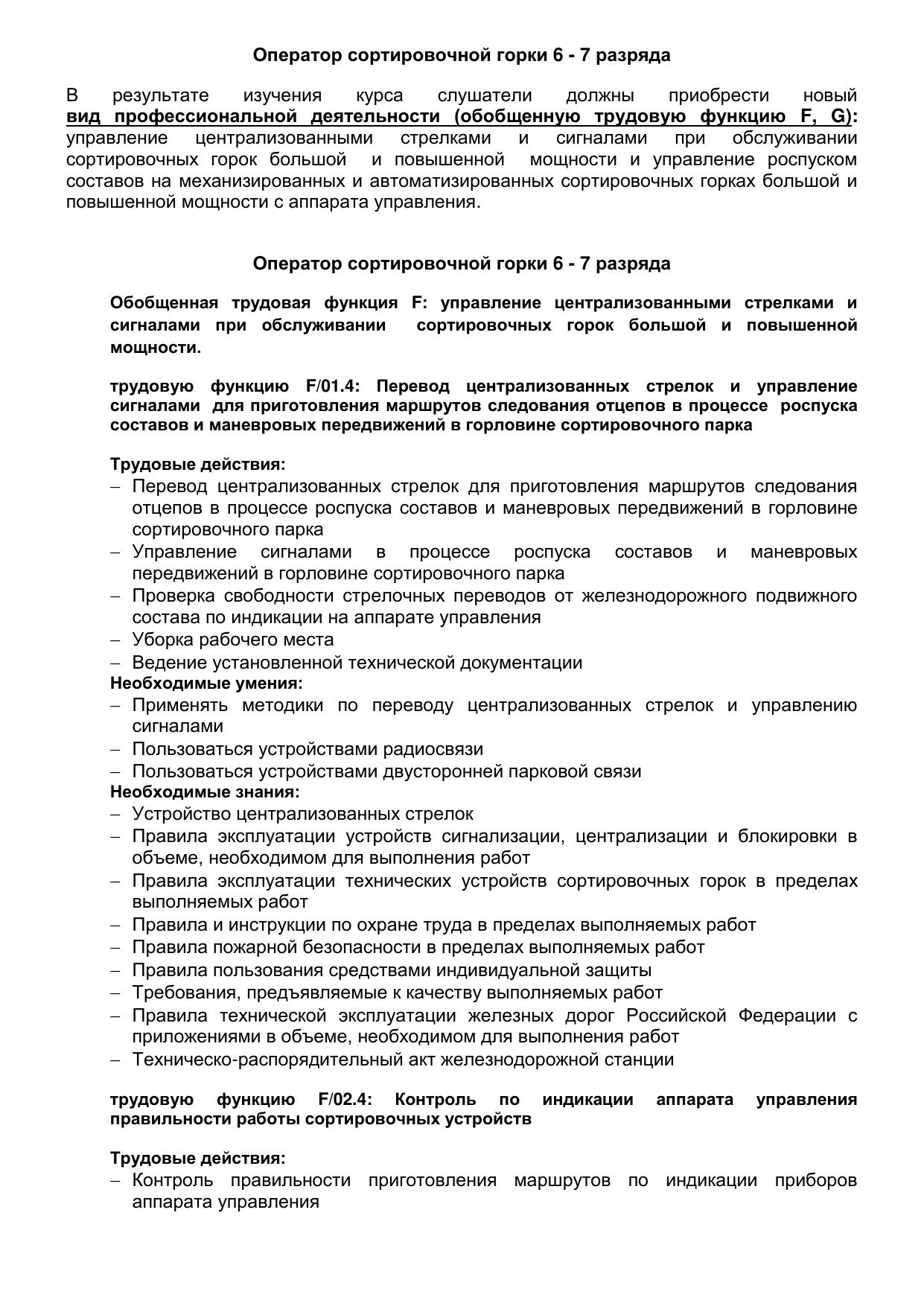Оператор сортировочной горки : программа профессиональной подготовки / . — Киров : КиТЖТ - филиал ПривГУПС, 2025. — 89 с. — Текст : электронный // УМЦ ЖДТ : электронная библиотека. — URL: https://umczdt.ru/books/1386/299843/ (дата обращения 16.04.2026). — Режим доступа: по подписке.