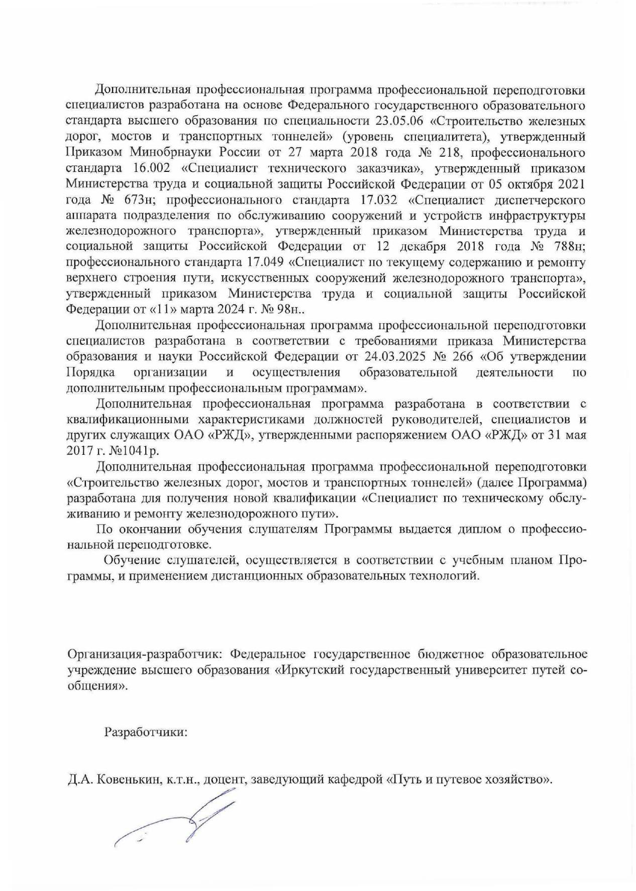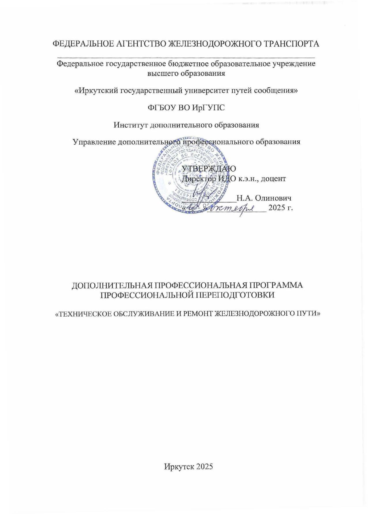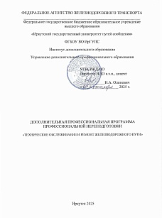 Техническое обслуживание и ремонт железнодорожного пути : программа профессиональной переподготовки / . — Иркутск : ИрГУПС, 2025. — 16 с. — Текст : электронный // УМЦ ЖДТ : электронная библиотека. — URL: https://umczdt.ru/books/1388/299700/ (дата обращения 06.03.2026). — Режим доступа: по подписке.