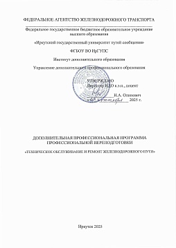 Техническое обслуживание и ремонт железнодорожного пути : программа профессиональной переподготовки / . — Иркутск : ИрГУПС, 2025. — 16 с. — Текст : электронный // УМЦ ЖДТ : электронная библиотека. — URL: https://umczdt.ru/books/1388/299700/ (дата обращения 19.04.2026). — Режим доступа: по подписке.