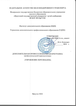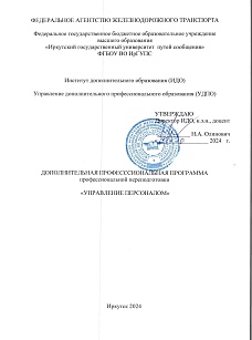 Управление персоналом : программа профессиональной переподготовки / . — Иркутск : ИрГУПС, 2024. — 15 с. — Текст : электронный // УМЦ ЖДТ : электронная библиотека. — URL: https://umczdt.ru/books/1388/299705/ (дата обращения 15.04.2026). — Режим доступа: по подписке.