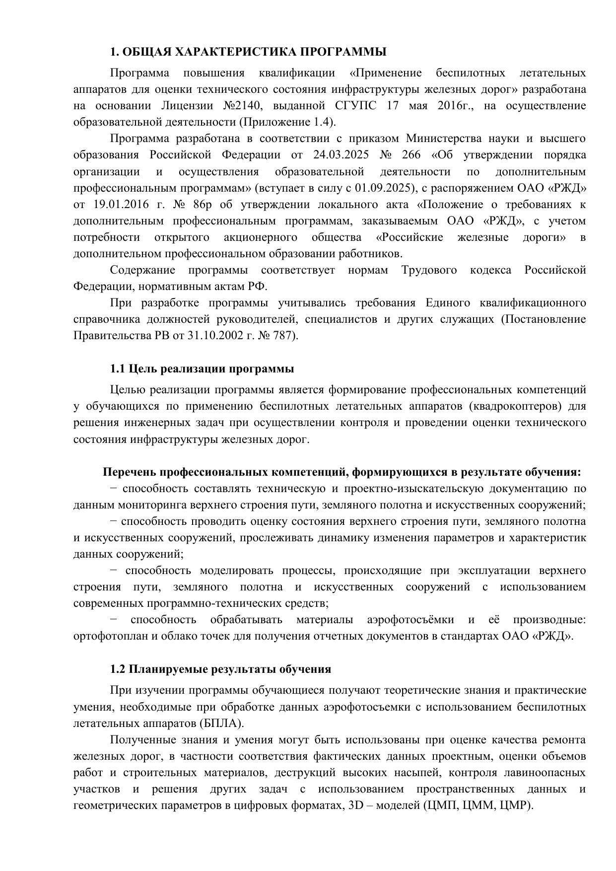 Применение беспилотных летательных аппаратов для оценки технического состояния инфраструктуры железных дорог : программа повышения квалификации / . — Новосибирск : СГУПС, 2025. — 11 с. — Текст : электронный // УМЦ ЖДТ : электронная библиотека. — URL: https://umczdt.ru/books/1308/299946/ (дата обращения 17.04.2026). — Режим доступа: по подписке.
