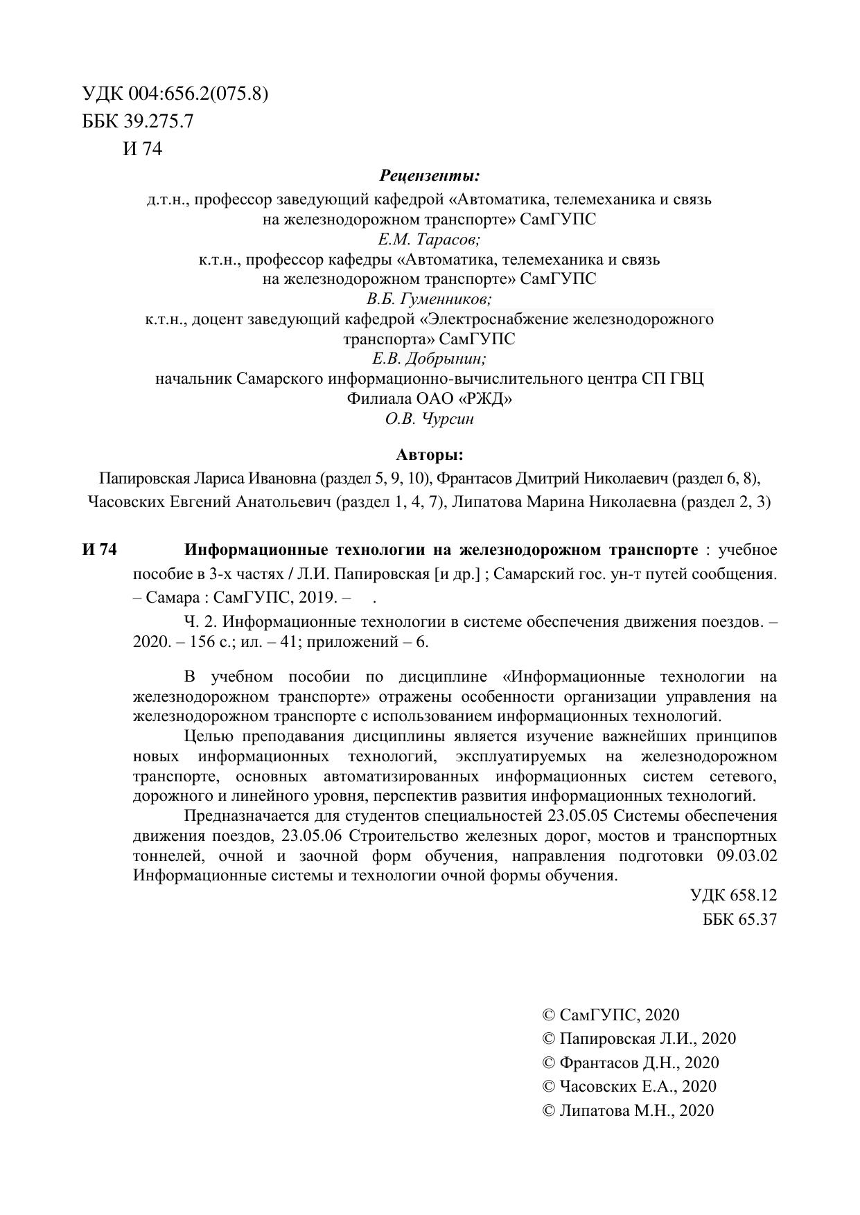 Папировская, Л.И. Информационные технологии на железнодорожном транспорте. Часть 2 : учебное пособие / Л. И. Папировская, Д. Н. Франтасов, М. Н. Липатова, А. П. Долгинцев. — Самара : СамГУПС, 2019. — 156 с. — Текст : электронный // УМЦ ЖДТ : электронная библиотека. — URL: https://umczdt.ru/books/1008/263413/ (дата обращения 30.04.2026). — Режим доступа: по подписке.
