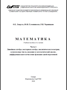 Лаврусь, О.Е. Математика. Часть 1. Линейная алгебра, векторная алгебра, аналитическая геометрия, комплексные числа, введение в математический анализ, дифференциальное исчисление функции одной переменной : учебное пособие / О. Е. Лаврусь, Ю. В. Гуменникова, Р. Н. Черницына. — Самара : СамГУПС, 2020. — 124 с. — Текст : электронный // УМЦ ЖДТ : электронная библиотека. — URL: https://umczdt.ru/books/1016/263541/ (дата обращения 21.01.2026). — Режим доступа: по подписке.