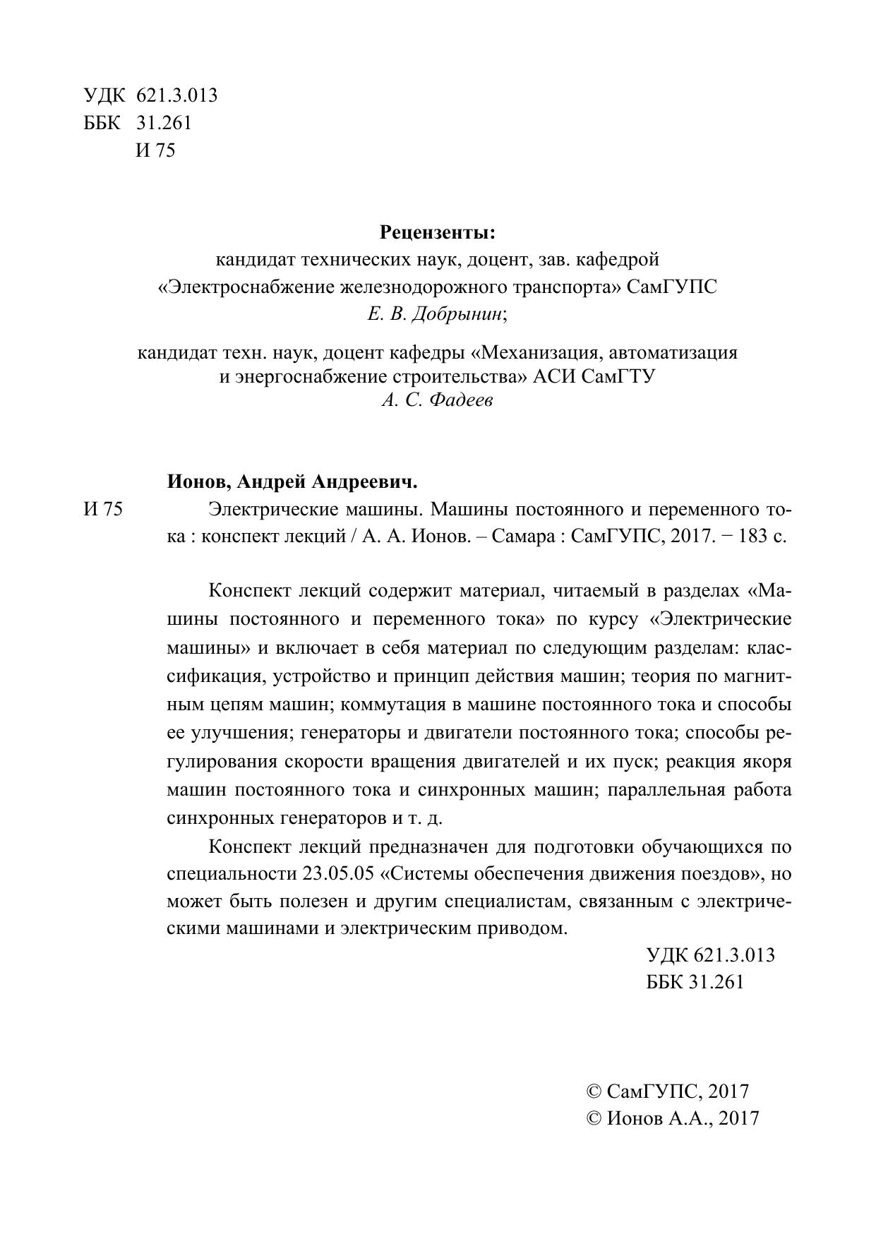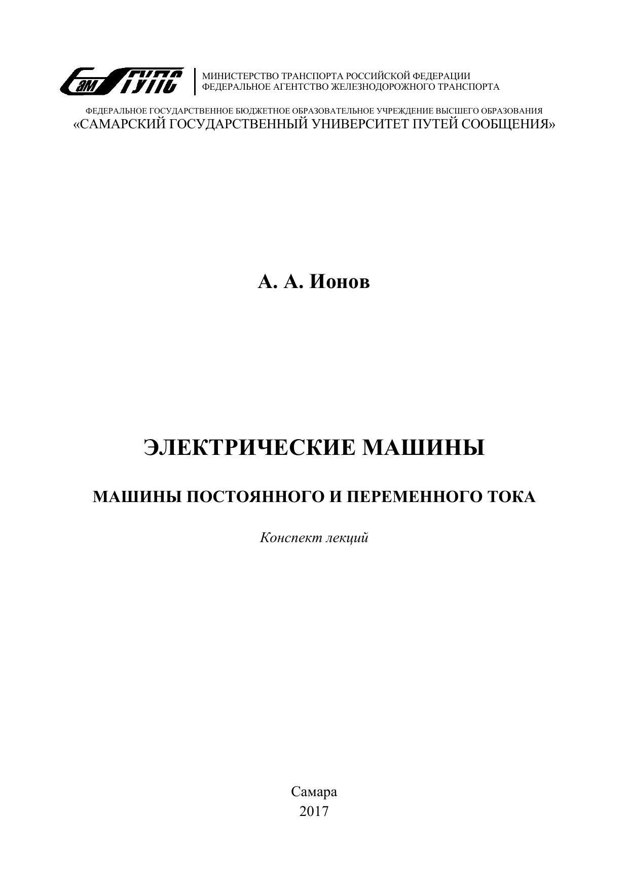 Ионов, А.А. Электрические машины. Машины постоянного и переменного тока : конспект лекций / А. А. Ионов. — Самара : СамГУПС, 2017. — 183 с. — Текст : электронный // УМЦ ЖДТ : электронная библиотека. — URL: https://umczdt.ru/books/1022/263595/ (дата обращения 13.02.2026). — Режим доступа: по подписке.