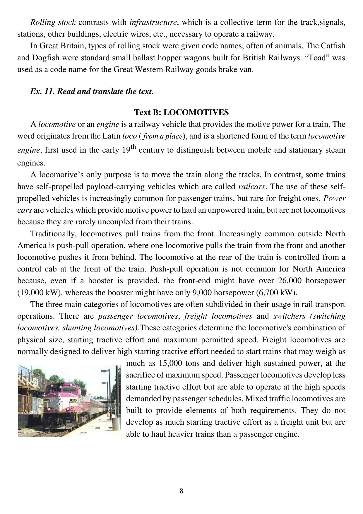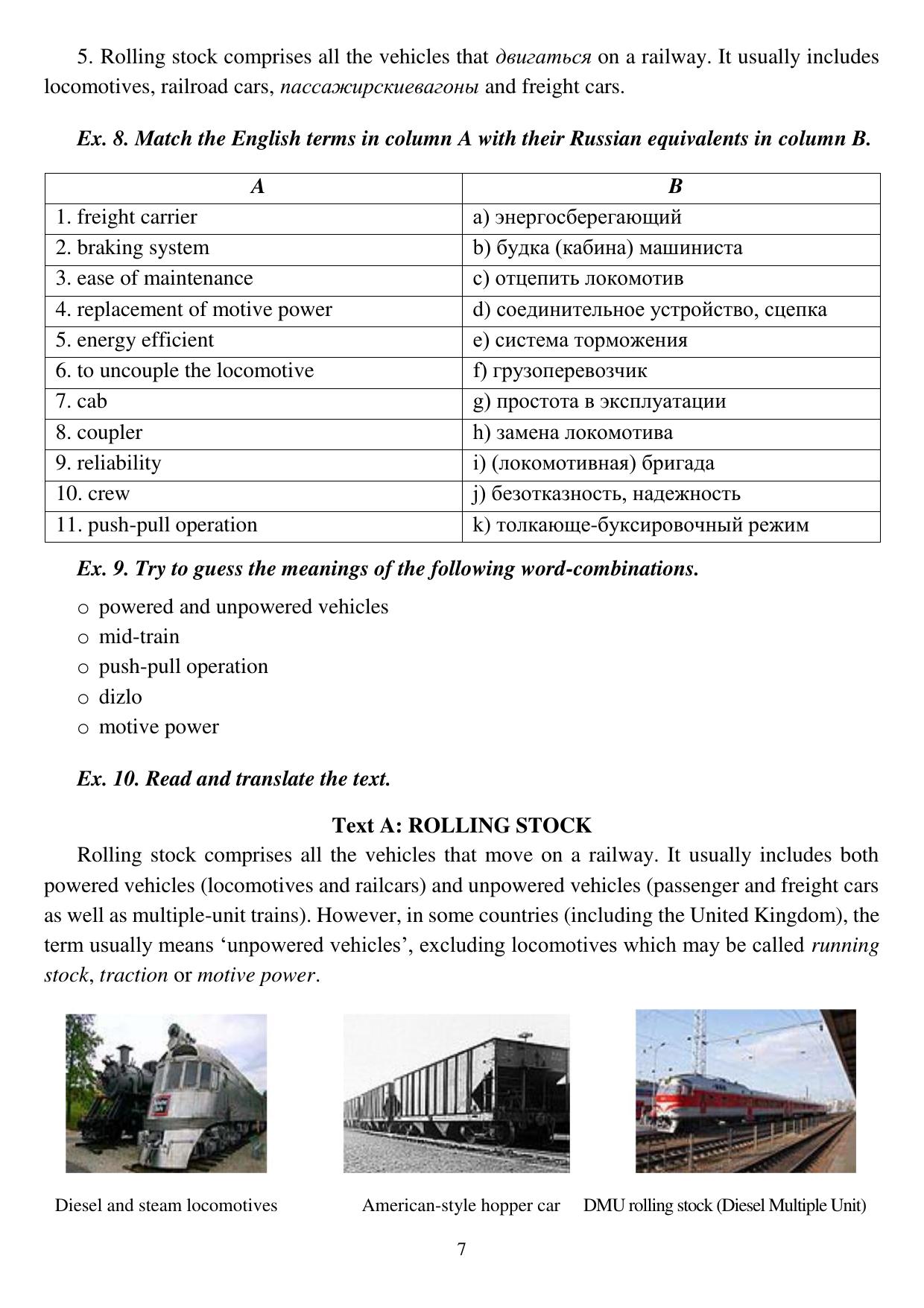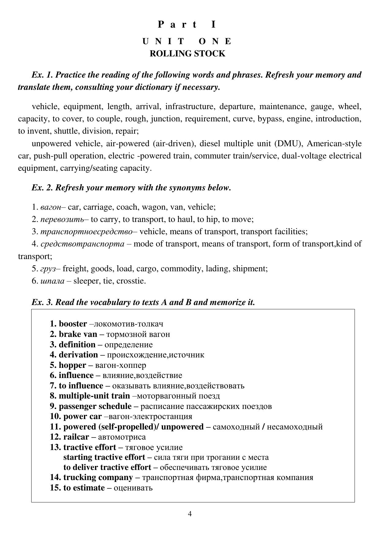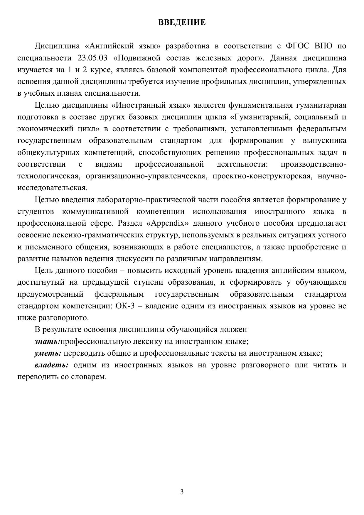 Пособие «Английский язык» разработано в соответстви с ФГОС ВПО по специальности 23.05.01 «Наземные транспортно-технологические средства». Пособие состоит из двух базовых частей, которые представляют собой текстовый материал, лексические, грамматические упражнения, блок дополнительных материалов включает практикум по двустороннему переводу, лексико-граматические материалы, список сокращений. используемых в технической литературе, а также краткий словарь железнодорожных терминов. Материалы в пособии подобраны с учётом уровня знаний обучающихся, что даёт возможность их вариантивного использования, в процесе обучения и поможет качественно справиться с поставленнымии задачами.