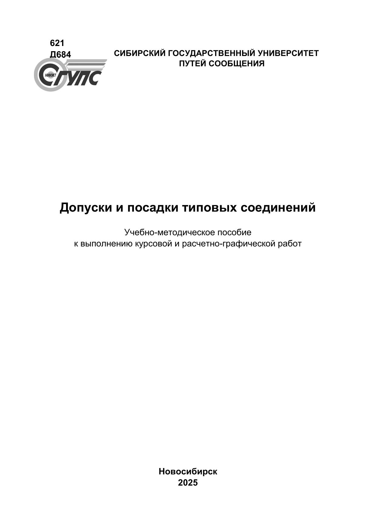 Шаламова, О.А. Допуски и посадки типовых соединений : учебно-методическое пособие / О. А. Шаламова, Е. Ю. Юркова, Е. В. Самойлова, С. А. Коларж, К. А. Медведев. — Новосибирск : СГУПС, 2025. — 79 с. — 978-5-00148-446-2. — Текст : электронный // УМЦ ЖДТ : электронная библиотека. — URL: https://umczdt.ru/books/1064/299295/ (дата обращения 13.03.2026). — Режим доступа: по подписке.
