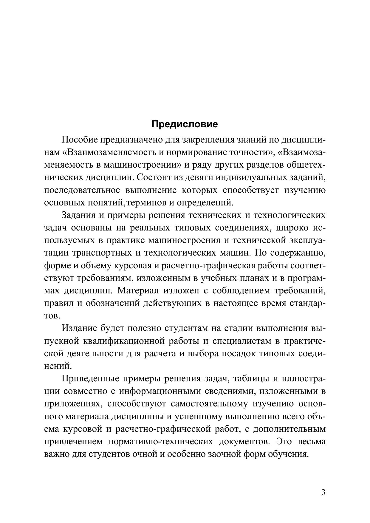 Содержит информацию, необходимую при решении задач по расчету и выбору посадок типовых соединений, используемых в транспортном машиностроении, точности изготовления деталей и выбору средств измерений. Предназначено для студентов, обучающихся по специальности 23.05.01 «Наземные транспортно-технологические средства», направления 23.03.03 «Эксплуатация транспортно-технологических машин и комплексов» и 27.03.01 «Стандартизация и метрология» (очная и заочнаяформы обучения)