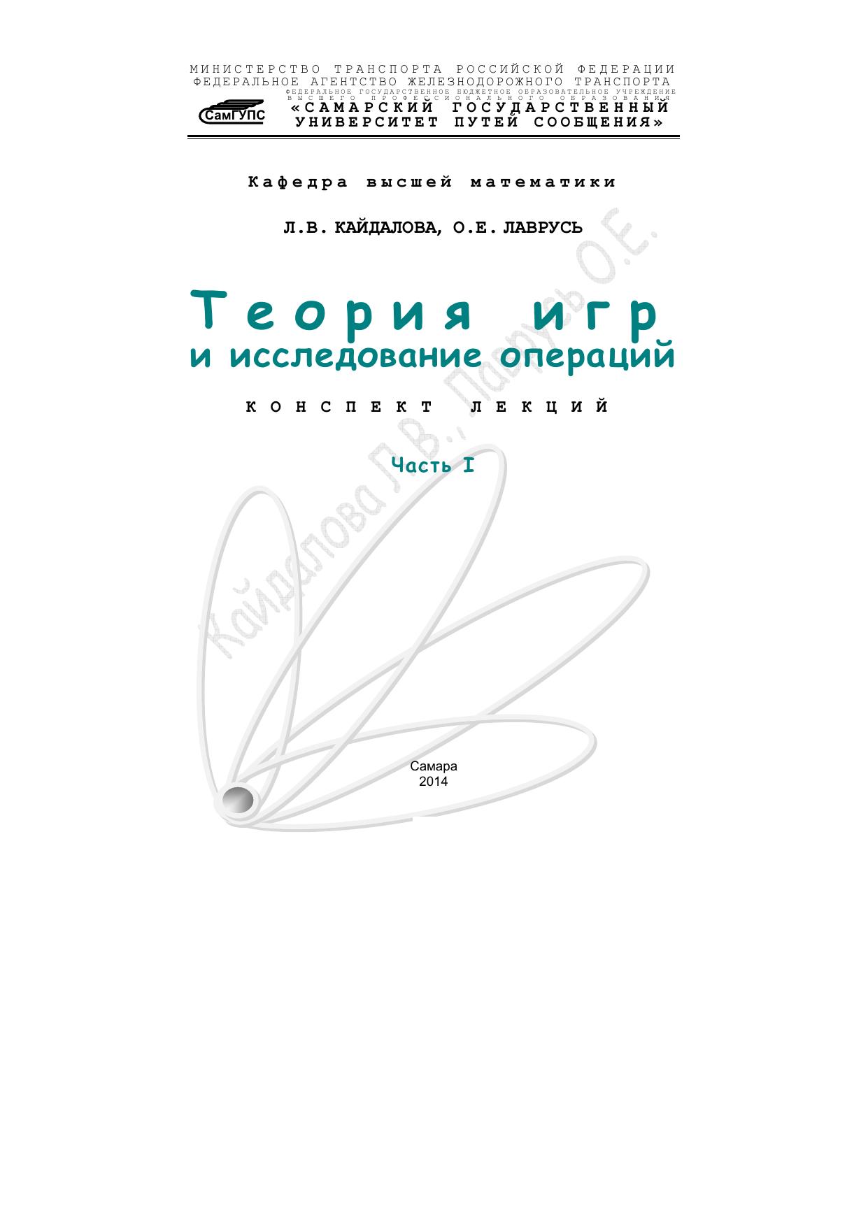 Кайдалова, Л.В. Теория игр и исследование операций. Часть 1 : конспект лекций / Л. В. Кайдалова, О. Е. Лаврусь. — Самара : СамГУПС, 2014. — 53 с. — Текст : электронный // УМЦ ЖДТ : электронная библиотека. — URL: https://umczdt.ru/books/1071/263577/ (дата обращения 21.01.2026). — Режим доступа: по подписке.