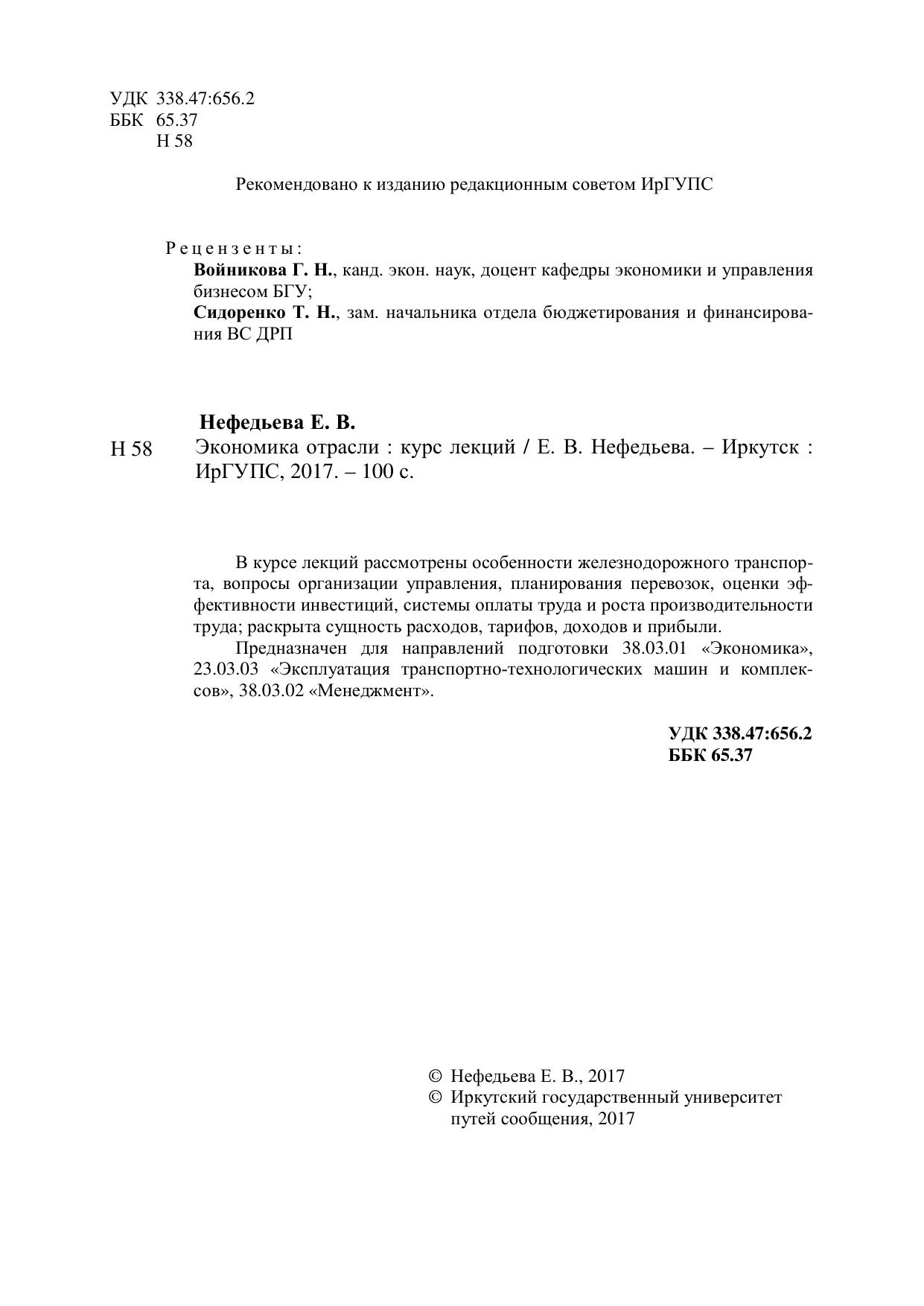 Нефедьева, Е.В. Экономика отрасли : курс лекций / Е. В. Нефедьева. — Иркутск : ИрГУПС, 2017. — 100 с. — Текст : электронный // УМЦ ЖДТ : электронная библиотека. — URL: https://umczdt.ru/books/1319/264315/ (дата обращения 09.11.2025). — Режим доступа: по подписке.