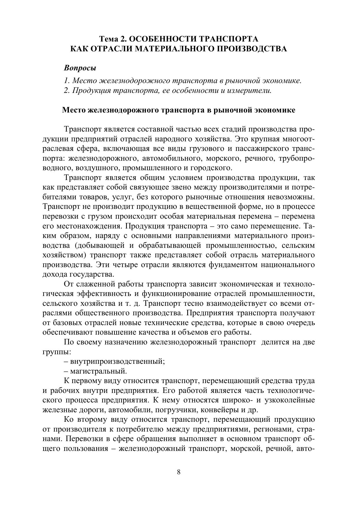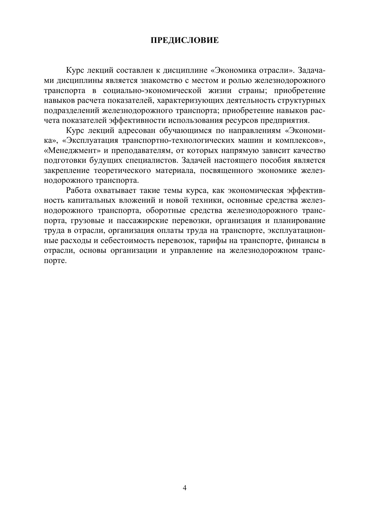 В курсе лекций рассмотрены особенности железнодорожного транспорта, вопросы организации управления, планирования перевозок, оценки эффективности инвестиций, системы оплаты труда и роста производительности труда; раскрыта сущность расходов, тарифов, доходов и прибыли. Предназначен для направлений подготовки 38.03.01 "Экономика", 23.03.03 "Эксплуатация транспортно-технологических машин и комплексов", 38.03.02 "Менеджмент".