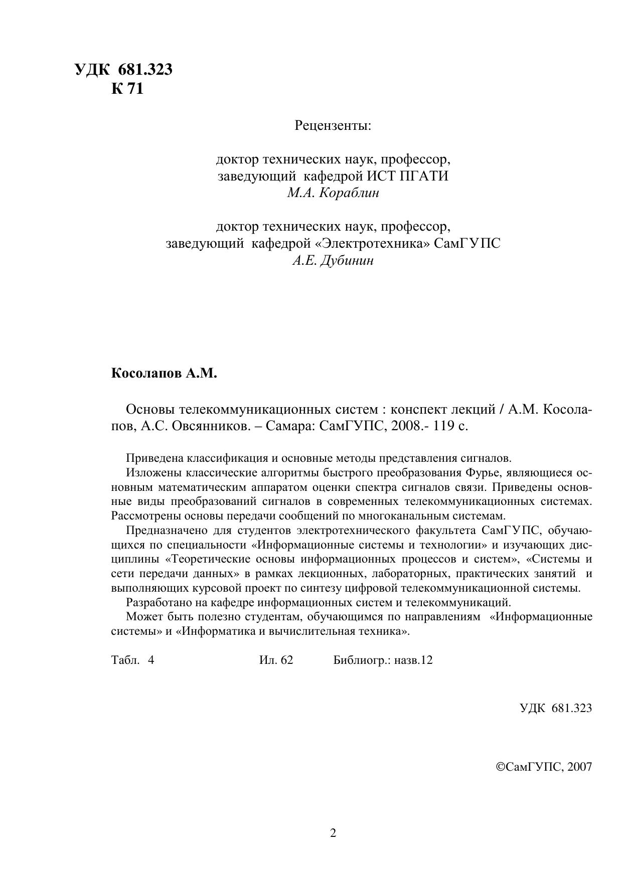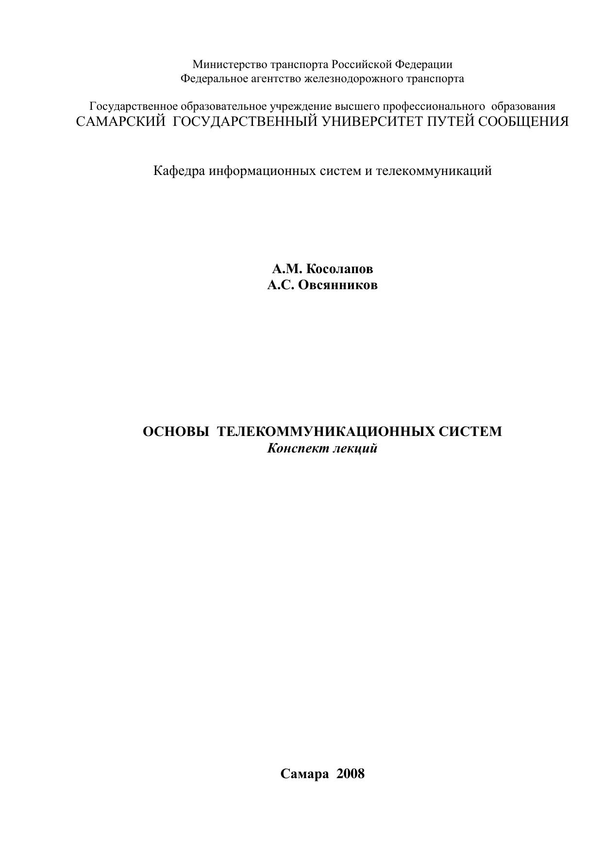 Косолапов, А.М. Основы телекоммуникационных систем : конспект лекций / А. М. Косолапов. — Самара : СамГУПС, 2008. — 119 с. — Текст : электронный // УМЦ ЖДТ : электронная библиотека. — URL: https://umczdt.ru/books/1094/263558/ (дата обращения 30.04.2026). — Режим доступа: по подписке.