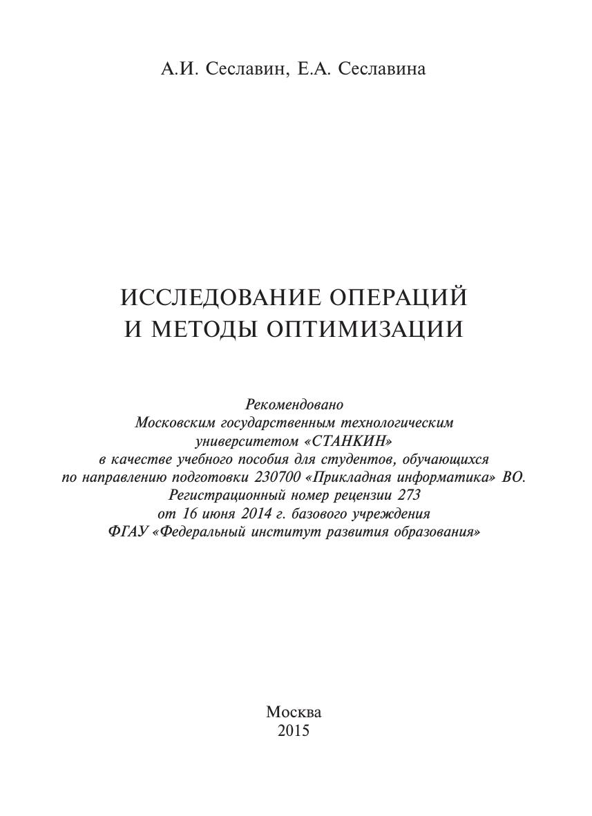 Исследование операций и методы оптимизации