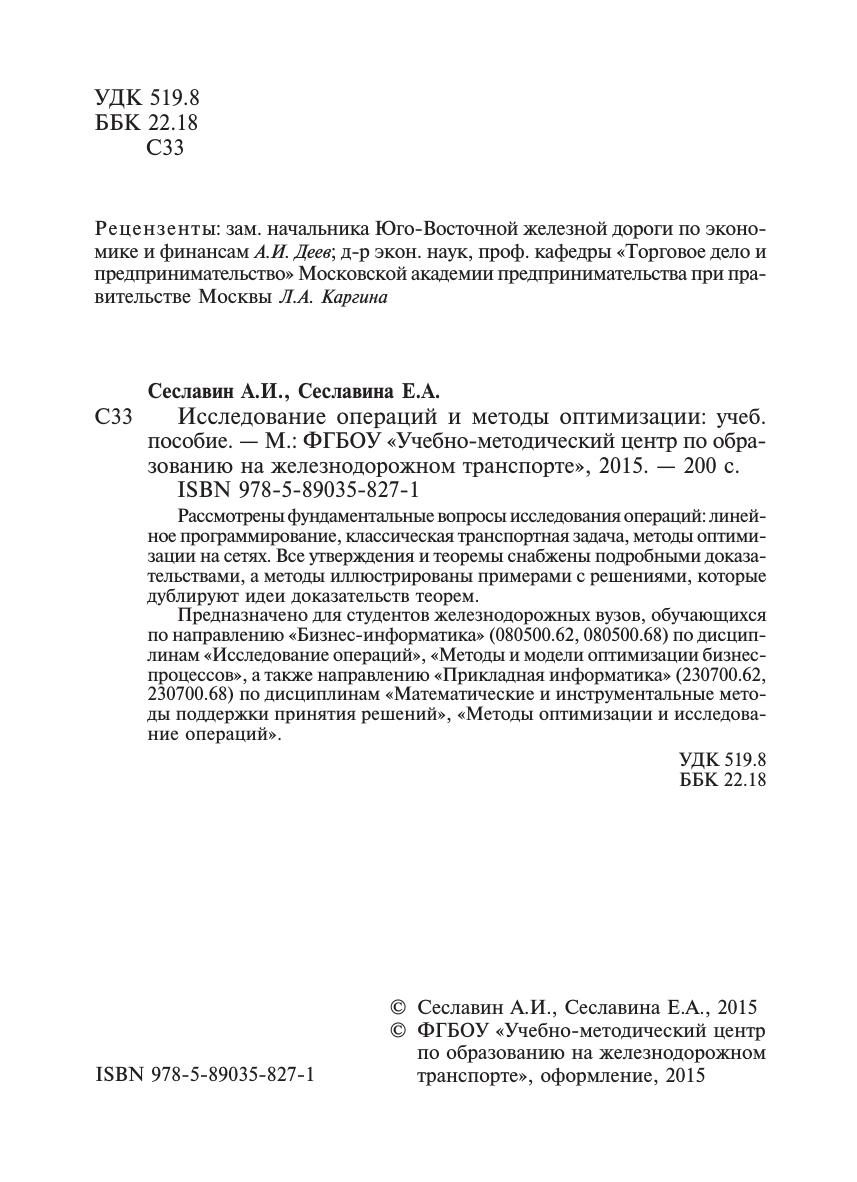 Предназначено для студентов железнодорожных вузов, обучающихся по направлению «Бизнес-информатика» (080500.62, 080500.68) по дисциплинам «Исследование операций», «Методы и модели оптимизации бизнес-процессов», а также направлению «Прикладная информатика» (230700.62, 230700.68) по дисциплинам «Математические и инструментальные методы поддержки принятия решений», «Методы оптимизации и исследование операций».