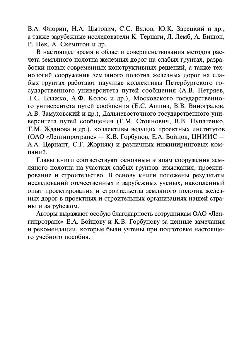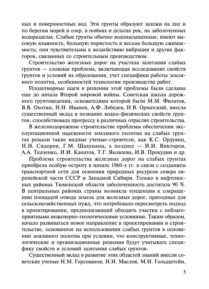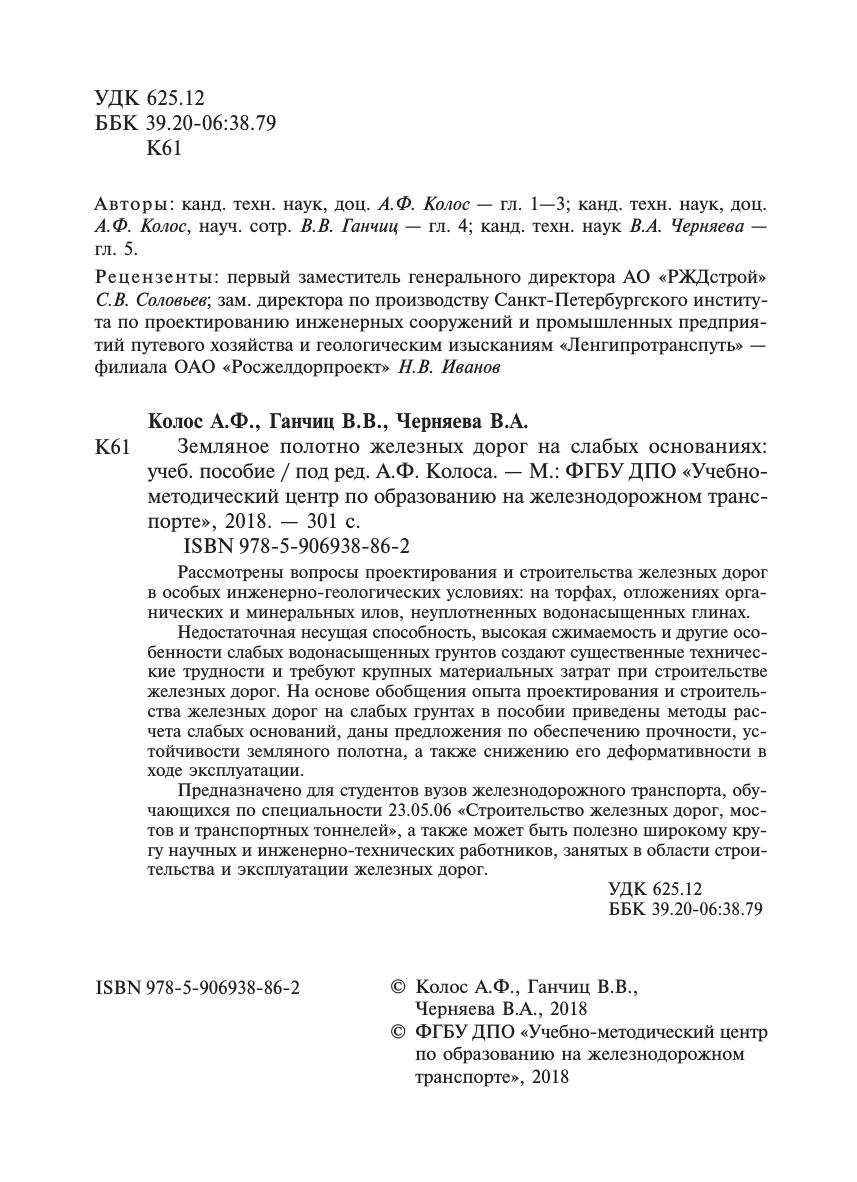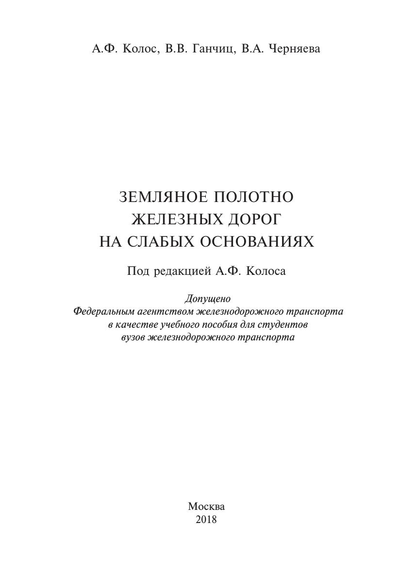 Рассмотрены вопросы проектирования и строительства железных дорог в особых инженерно-геологических условиях: на торфах, отложениях органических и минеральных илов, неуплотненных водонасыщенных глинах. Недостаточная несущая способность, высокая сжимаемость и другие особенности слабых водонасыщенных грунтов создают существенные технические трудности и требуют крупных материальных затрат при строительстве железных дорог. На основе обобщения опыта проектирования и строительства железных дорог на слабых грунтах в пособии приведены методы расчета слабых оснований, даны предложения по обеспечению прочности, устойчивости земляного полотна, а также снижению его деформативности в ходе эксплуатации.