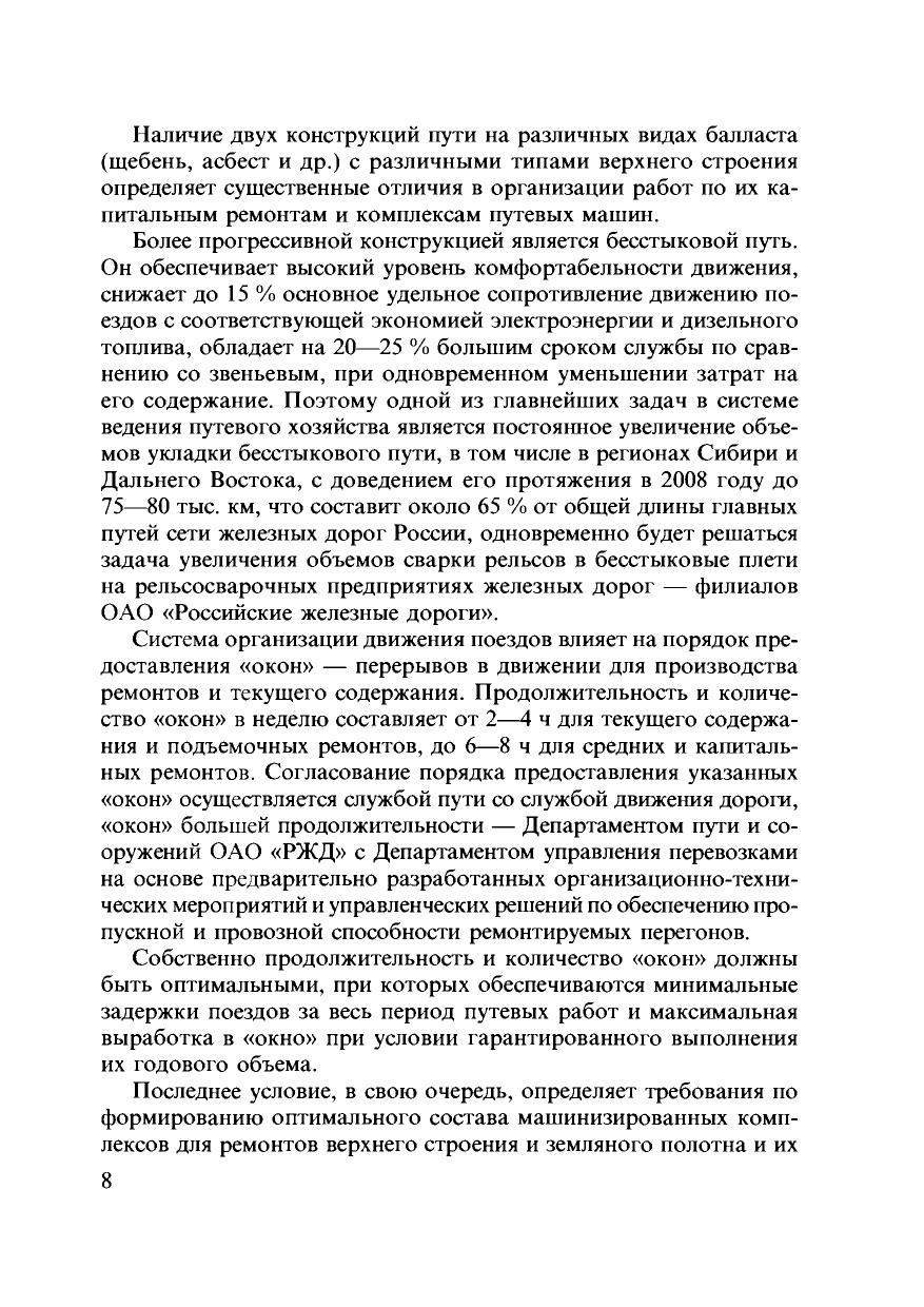 В пособии приведены сведения об устройстве, содержании и ремонтах железнодорожного пути в соответствии с классификацией путей и путевых работ, новой нормативной базой; описаны возможные неисправности, средства их выявления, методы предупреждения и устранения; даны сведения о современных путевых машинах и механизмах, используемых на работах по ремонтам и текущему содержанию пути; приведены основные технологии путевых работ; отражены меры по обеспечению безопасности движения поездов и техники безопасности производства работ. Предназначено д ля работников путевого хозяйства, осуществляющих комплексное содержание пути, может быть полезным для учащихся железнодорожных техникумов и колледжей.