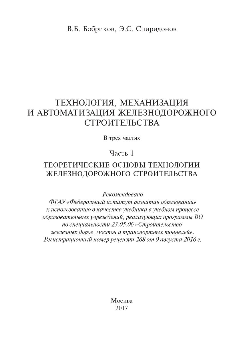 Учебник предназначен для студентов вузов железнодорожного транспорта, обучающихся по специальности 23.05.06 «Строительство железных дорог, мостов и транспортных тоннелей»; может быть полезен студентам других специальностей строительного профиля, а также специалистам организаций железнодорожного транспорта и транспортного строительства.