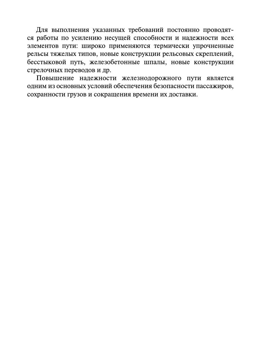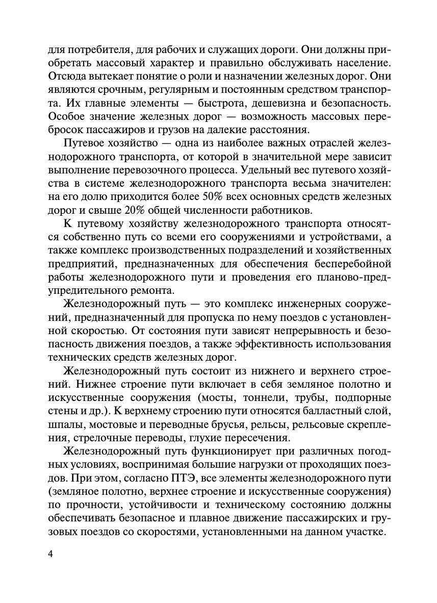В учебнике дано определение железнодорожного пути как комплекса инженерных сооружений, предназначенного для пропуска по нему поездов с установленной скоростью. Описаны конструкции верхнего и нижнего строения железнодорожного пути, основные типы земляного полотна, отражены его характеристики. В учебнике рассмотрены принципы работы стрелочных переводов, устройство бесстыкового пути, конструкции рельсовых скреплений, а также приведены основные типы водоотводных и защитных сооружений. Книга предназначена в качестве учебника для обучающихся в железнодорожных образовательных организациях по программам высшего и среднего профессионального образования. Также она может представлять практический интерес для широкого круга научно-технических, инженерных и производственных работников, занятых вопросами проектирования, строительства и эксплуатации железнодорожного пути.