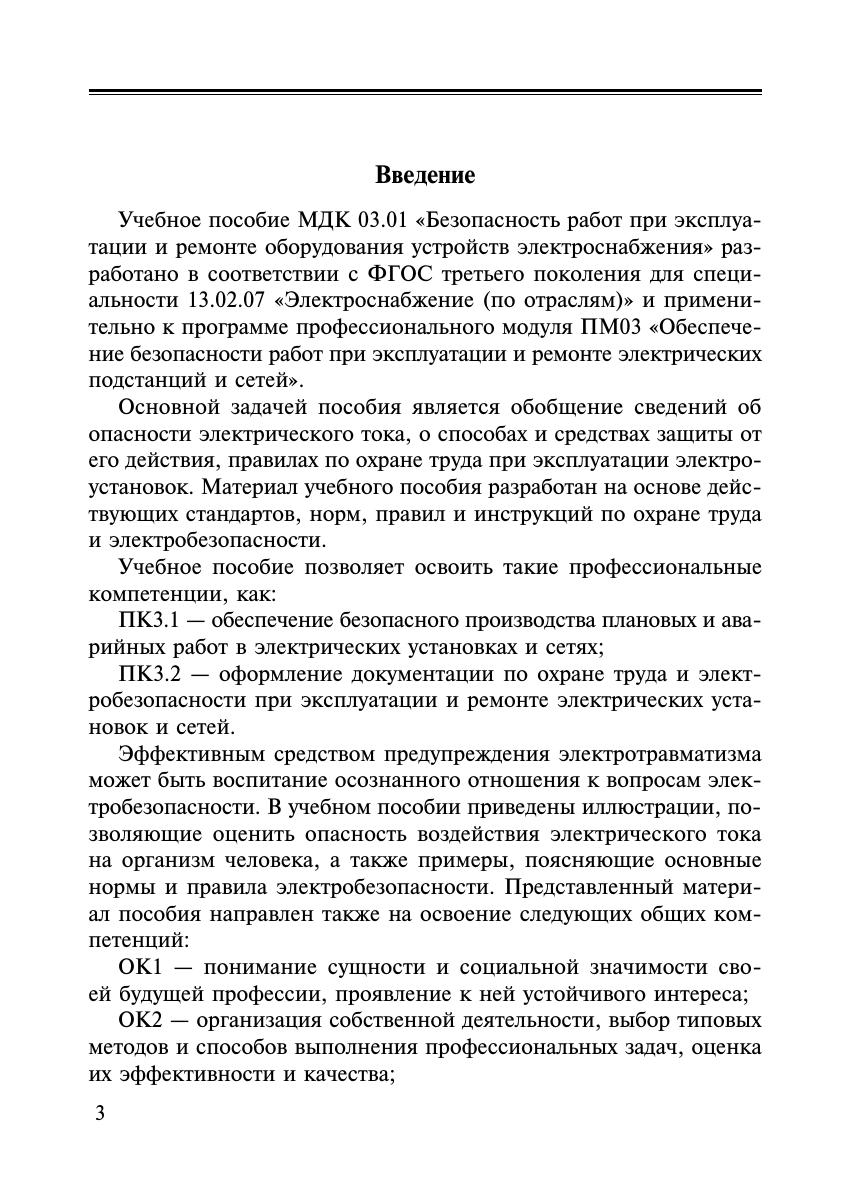 Изложены основные сведения об опасности электрического тока, способах и средствах защиты от его воздействия, правилах по охране труда при эксплуатации электроустановок. Освещены теоретические основы и принципы обеспечения безопасности при работах в действующих электроустановках, приведены основные параметры и конструкции заземляющих устройств, а также описания электрозащитных средств, правила их применения и нормы испытаний. Подробно рассмотрены требования, предъявляемые к работникам, допускаемым к выполнению работ в действующих электроустановках, порядок оформления результатов проверки знаний Правил техники безопасности работниками, а также порядок применения системы талонов-предупреждений по охране труда. Приведены иллюстрации, позволяющие оценить опасность воздействия электрического тока на организм человека, а также примеры, поясняющие основные нормы и правила электробезопасности.