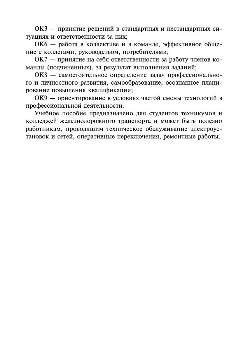 Предназначено для студентов техникумов и колледжей железнодорож- ного транспорта и может быть полезно работникам, выполняющим техническое обслуживание электроустановок и сетей, оперативные переключения, ремонтные работы.
