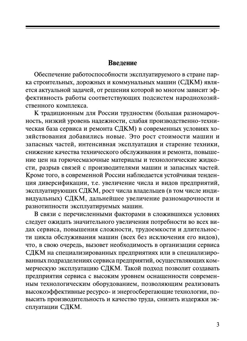 Показаны место и значение сервиса в обеспечении работоспособности строительных, дорожных и коммунальных машин. Рассмотрена специфика работ и технологических процессов сервиса машин. Изложены основные закономерности формирования системы сервиса машин и комплексные показатели оценки ее эффективности. Представлены сведения о современных методах организации производственных процессов и средствах технологического оснащения постов, зон участков сервиса. Особое внимание уделено выбору способа и пункта совмещения средств и объектов сервиса. Освещены вопросы организации материально-технического обеспечения. Приведена методика технологического проектирования производственно-технологической базы сервиса строительных, дорожных и коммунальных машин и расчета требуемых ресурсов. Рассмотрены вопросы охраны труда и экологической безопасности при обслуживании машин. Предназначено для студентов вузов железнодорожного транспорта, обучающихся по направлению подготовки (специальности) 190109.65 «Наземные транспортно-технологические средства» при изучении базовой дисциплины профессионального цикла «Эксплуатация подъемно-транспортных, строительных, дорожных средств и оборудования», рекомендовано для студентов, обучающихся по направлению высшего профессионального образования 190600.62 «Эксплуатация транспортно-технологических машин и комплексов» (все профили, с присвоением выпускнику квалификации «бакалавр» и специального звания «бакалавр-инженер») при освоении базовой дисциплины профессионального цикла «Технологические процессы технического обслуживания и ремонта транспортных и транспортно-технологических машин и оборудования».