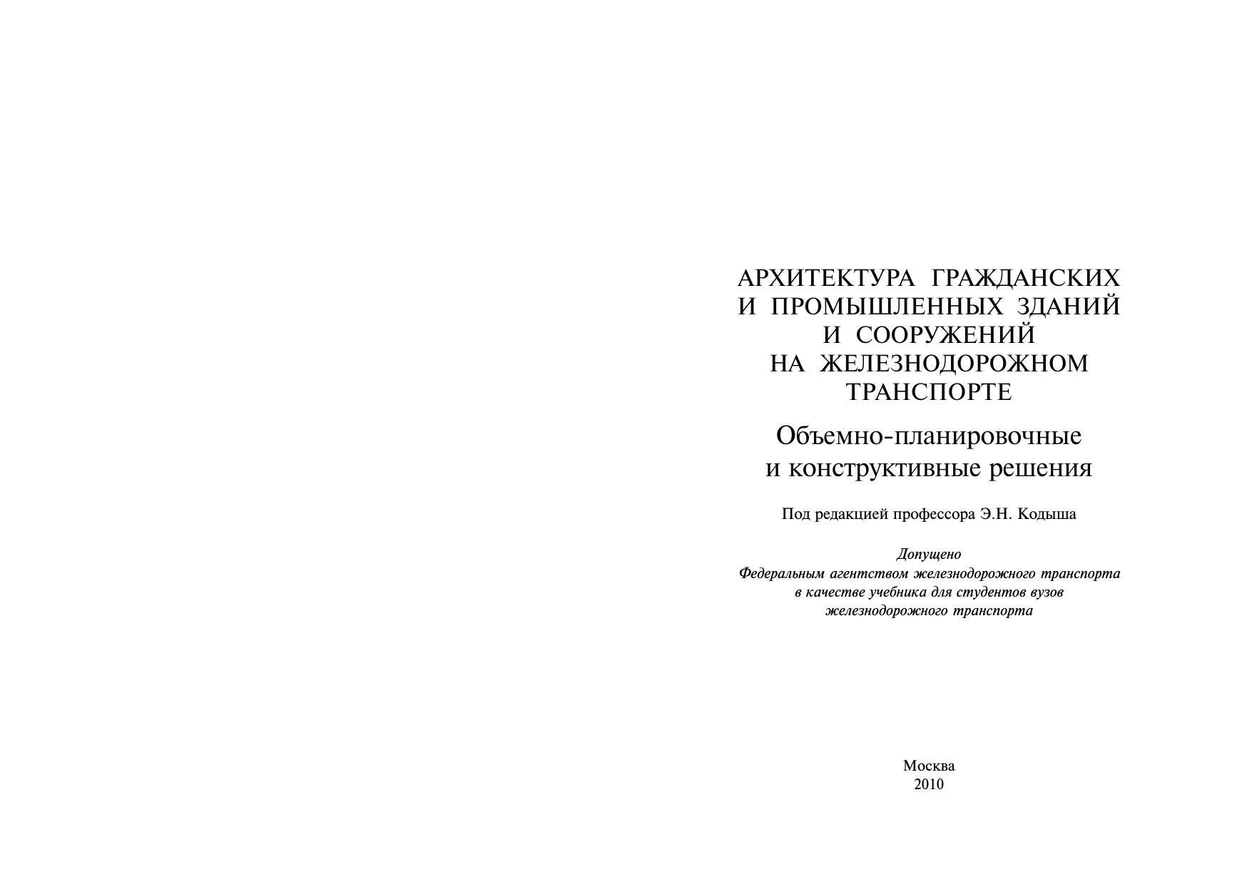 Архитектура гражданских и промышленных зданий и сооружений на железнодорожном транспорте. Объемно-планировочные и конструктивные решения