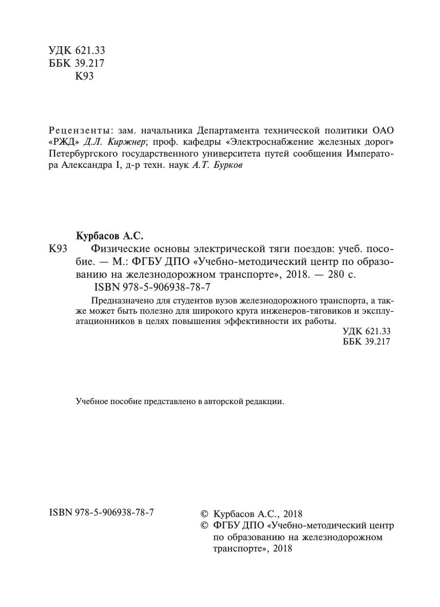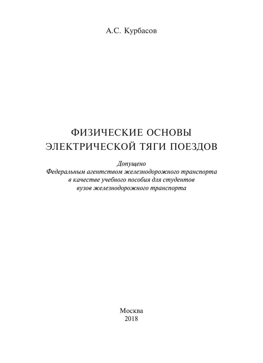 Курбасов, А.С. Физические основы электрической тяги поездов : учебное пособие / А. С. Курбасов. — Москва : ФГБУ ДПО «Учебно-методический центр по образованию на железнодорожном транспорте», 2018. — 280 с. — 978-5-906938-78-7. — Текст : электронный // УМЦ ЖДТ : электронная библиотека. — URL: https://umczdt.ru/books/1200/18714/ (дата обращения 21.01.2026). — Режим доступа: по подписке.