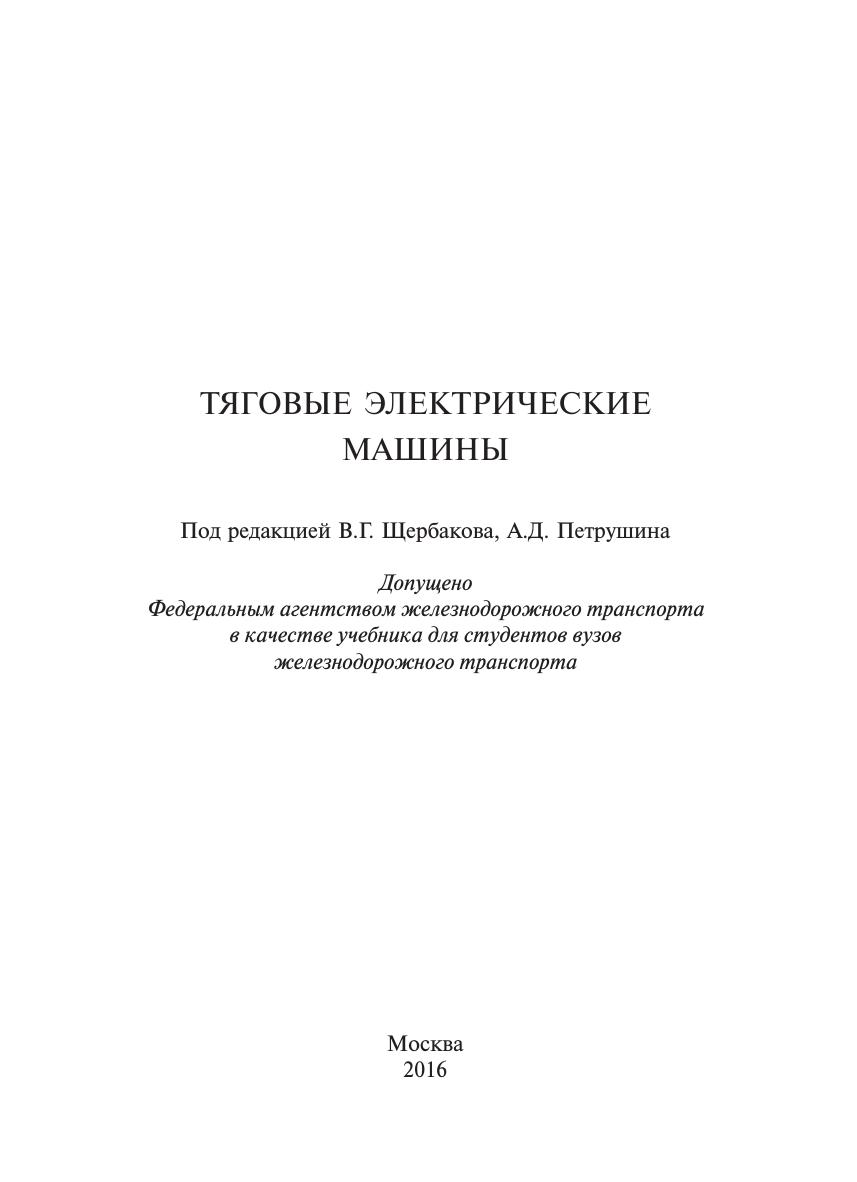 Предназначен для студентов вузов, обучающихся по специальности 23.05.03 «Подвижной состав железных дорог», а также может быть полезен для инженеров, занимающихся проектированием и эксплуатацией тяговых электрических машин на подвижном составе железных дорог.
