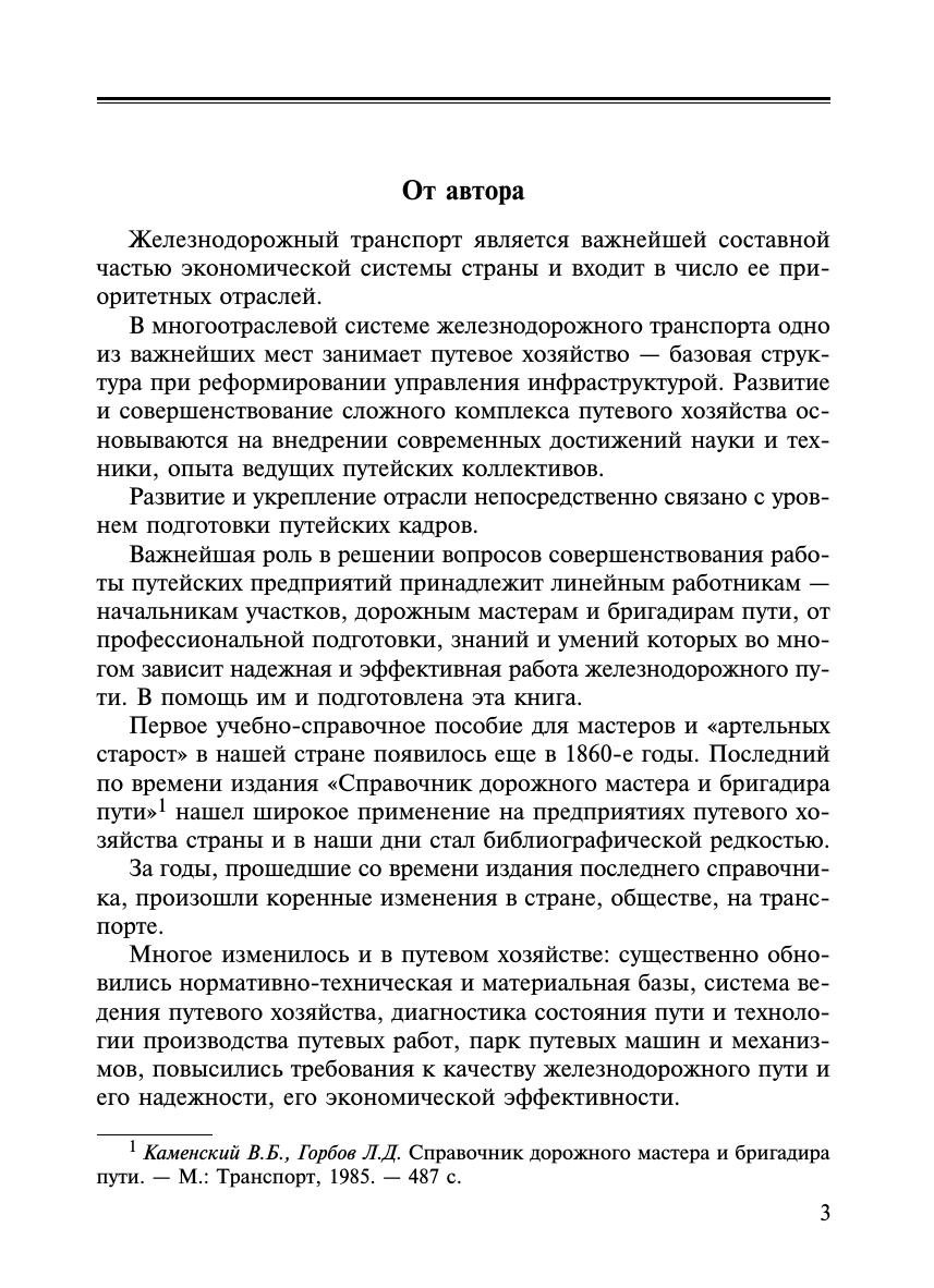 It intended for line workers of track facilities - segment superiors (senior road foremen), road foremen and brigadiers of track; for use in the system of vocational training and retraining of linear workers in technical schools and training centers of JSC Russian Railways, as well as during technical studies at track distances, distances of engineering structures and track machine stations; may be useful to university students studying in the specialty 08.02.10 "Construction of railways, bridges and transport tunnels", students of technical schools and colleges of railway transport”.