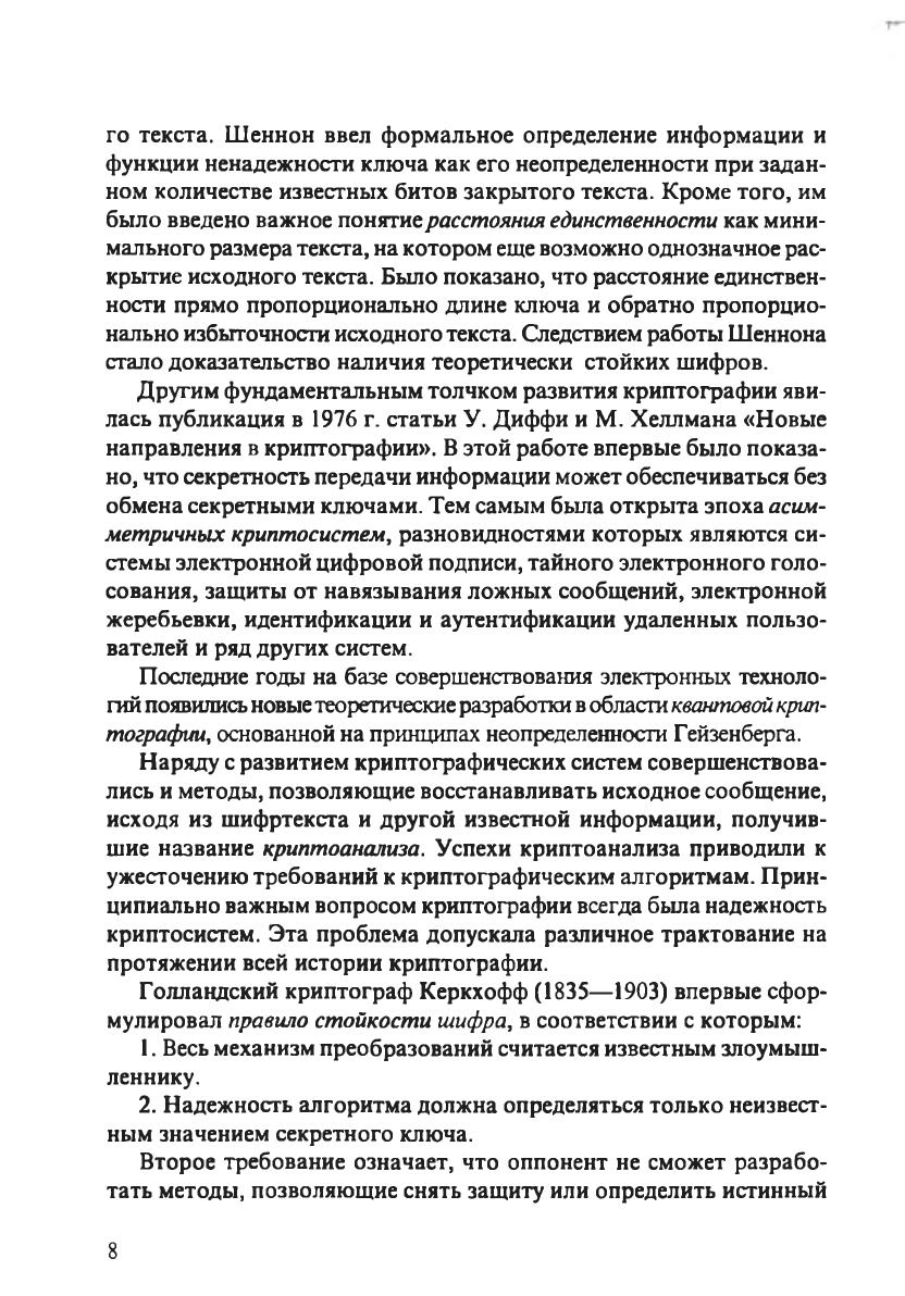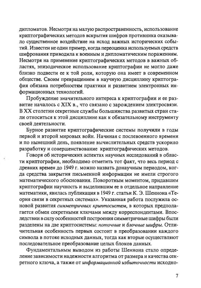 В учебном пособии изложены теоретические принципы построения криптографических систем и практические аспекты их применения для защиты информации. Рассмотрены основные вопросы современной криптографии: от принципов построения поточных и блочных шифров, криптосистем с открытым ключом до систем электронной цифровой подписи и инфраструктуры открытых ключей. Представлен обзор подходов к оценке стойкости криптосистем. Описано одно из направлений современной криптографии, имеющее большое практическое значение, — применение концепции управляемых операций при построении высокоскоростных блочных шифров. Приведены особенности применения и обзор средств криптографической защиты информации в различных сечениях информационных систем.