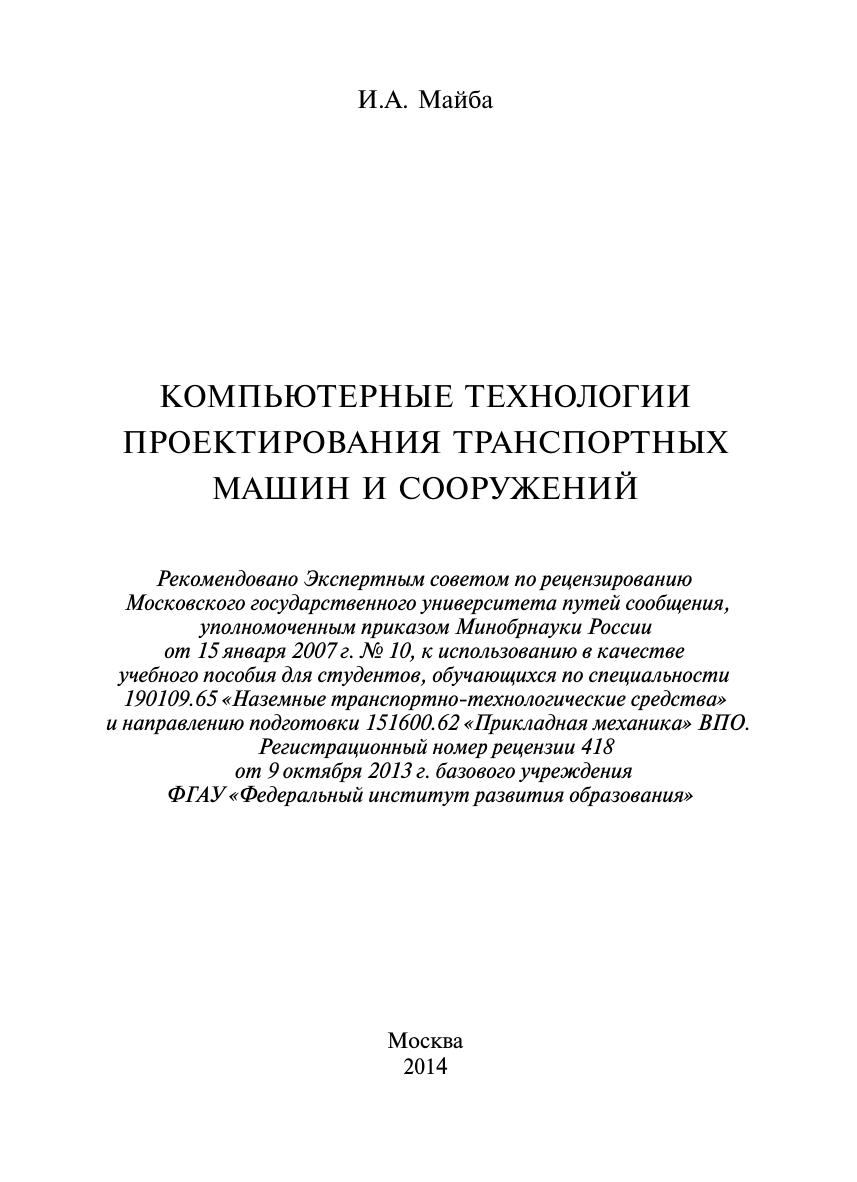Компьютерные технологии проектирования транспортных машин и сооружений