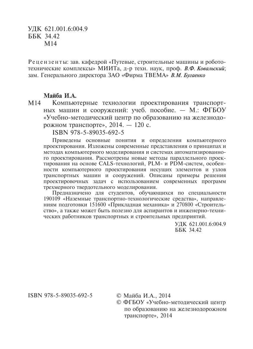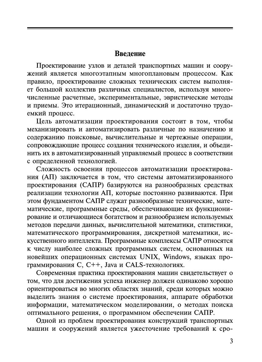 Приведены основные понятия и определения компьютерного проектирования. Изложены современные представления о принципах и методах компьютерного моделирования и системах автоматизированного проектирования. Рассмотрены новые методы параллельного проектирования на основе CALS-технологий, PLM- и PDM-систем, особенности компьютерного проектирования несущих элементов и узлов транспортных машин и сооружений. Описаны примеры решения проектировочных задач с использованием современных программ трехмерного твердотельного моделирования.