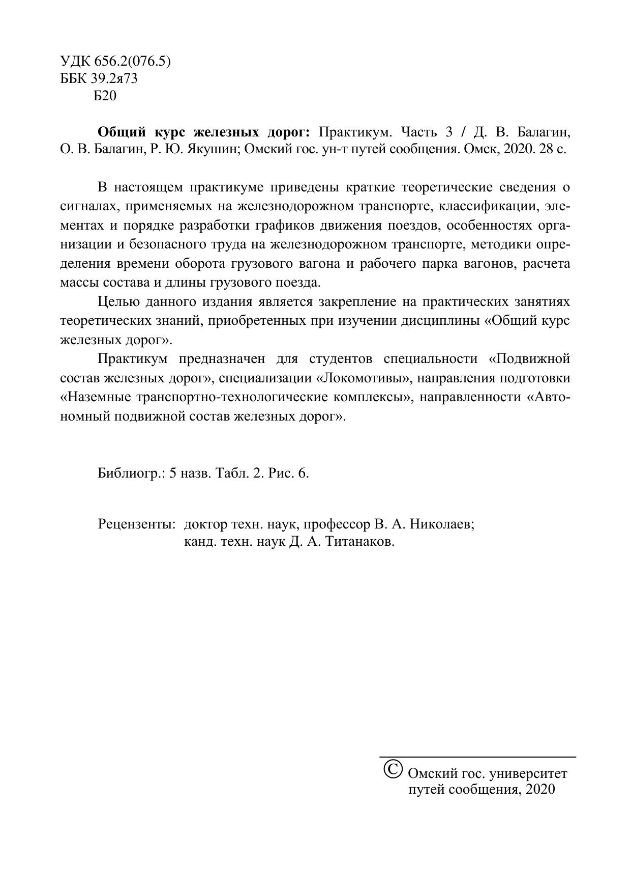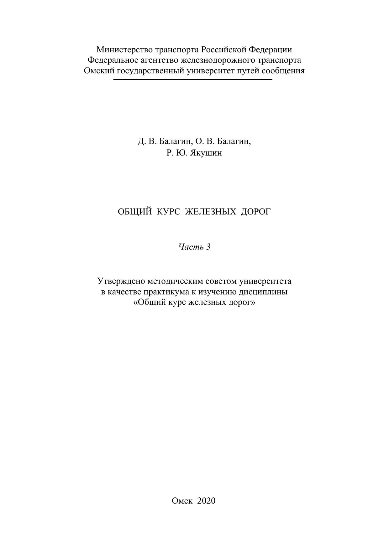 Балагин, Д.В. Общий курс железных дорог. Часть 3 : учебник / Д. В. Балагин, Р. Ю. Якушин, О. В. Балагин. — Омск : ОмГУПС, 2020. — 28 с. — Текст : электронный // УМЦ ЖДТ : электронная библиотека. — URL: https://umczdt.ru/books/1212/252964/ (дата обращения 30.04.2026). — Режим доступа: по подписке.