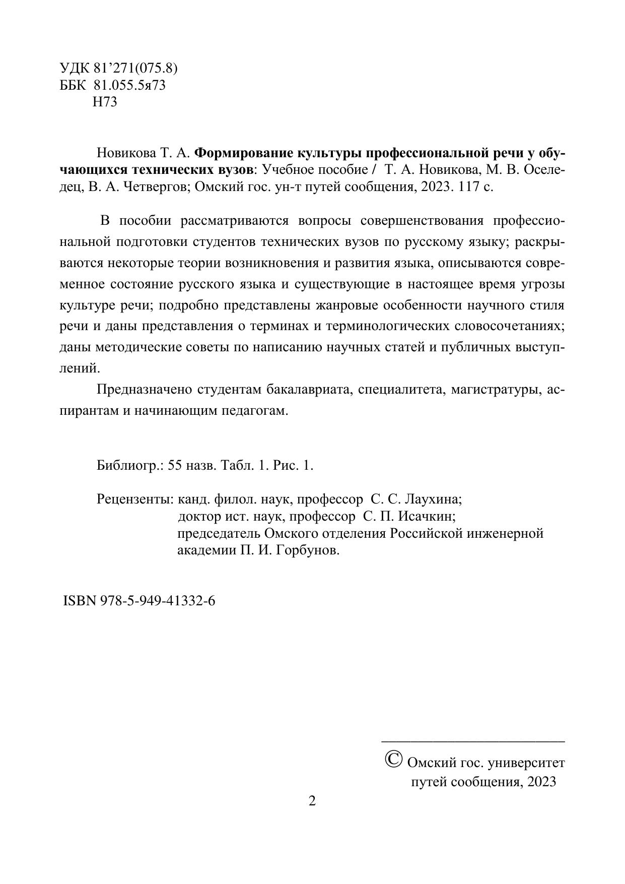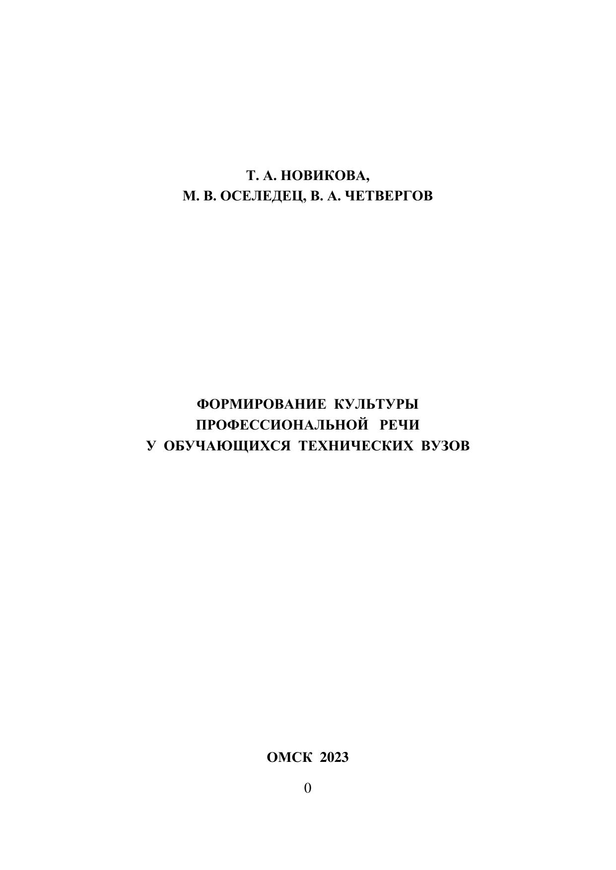 Новикова, Т.А. Формирование культуры профессиональной речи у обучающихся технических вузов : учебник / Т. А. Новикова, М. В. Оселедец, В. А. Четвергов. — Омск : ОмГУПС, 2023. — 117 с. — 978-5-949-41332-6. — Текст : электронный // УМЦ ЖДТ : электронная библиотека. — URL: https://umczdt.ru/books/1212/297560/ (дата обращения 08.02.2026). — Режим доступа: по подписке.