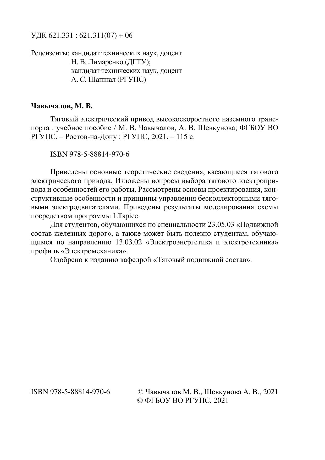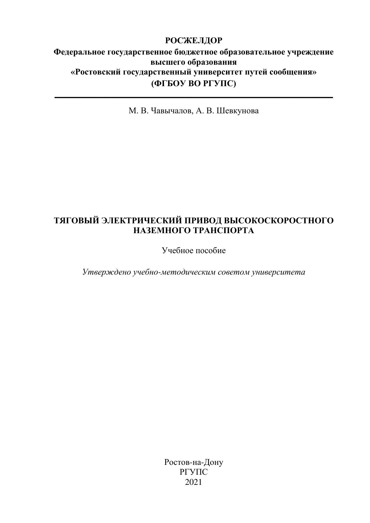 Чавычалов, М.В. Тяговый электрический привод высокоскоростного наземного транспорта : учебное пособие / М. В. Чавычалов, А. В. Шевкунова. — Ростов-на-Дону : РГУПС, 2021. — 115 с. — 978-5-88814-970-6. — Текст : электронный // УМЦ ЖДТ : электронная библиотека. — URL: https://umczdt.ru/books/1214/261949/ (дата обращения 08.11.2025). — Режим доступа: по подписке.