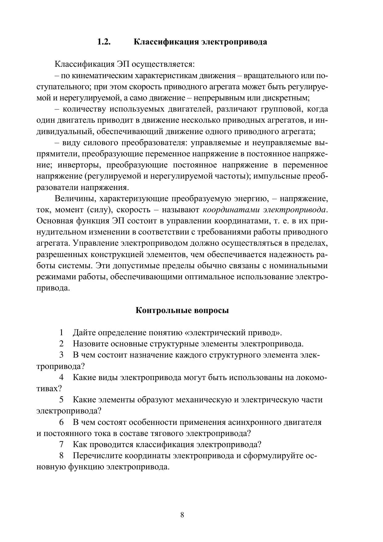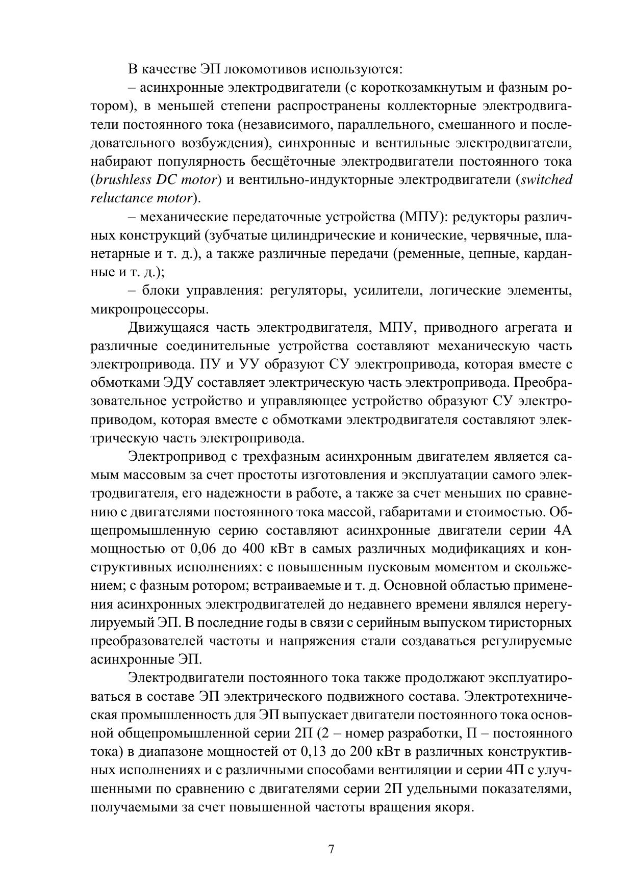 Приведены основные теоретические сведения, касающиеся тягового электрического привода. Изложены вопросы выбора тягового электропривода и особенностей его работы. Рассмотрены основы проектирования, конструктивные особенности и принципы управления бесколлекторными тяговыми электродвигателями. Приведены результаты моделирования схемы посредством программы LTspice. Для студентов, обучающихся по специальности 23.05.03 «Подвижной состав железных дорог», а также может быть полезно студентам, обучающимся по направлению 13.03.02 «Электроэнергетика и электротехника» профиль «Электромеханика». Одобрено к изданию кафедрой «Тяговый подвижной состав».