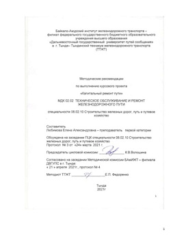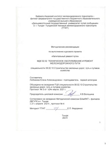 Методические рекомендации по выполнению курсового проекта «Капитальный ремонт пути» МДК 02.02 Техническое обслуживание и ремонт железнодорожного пути