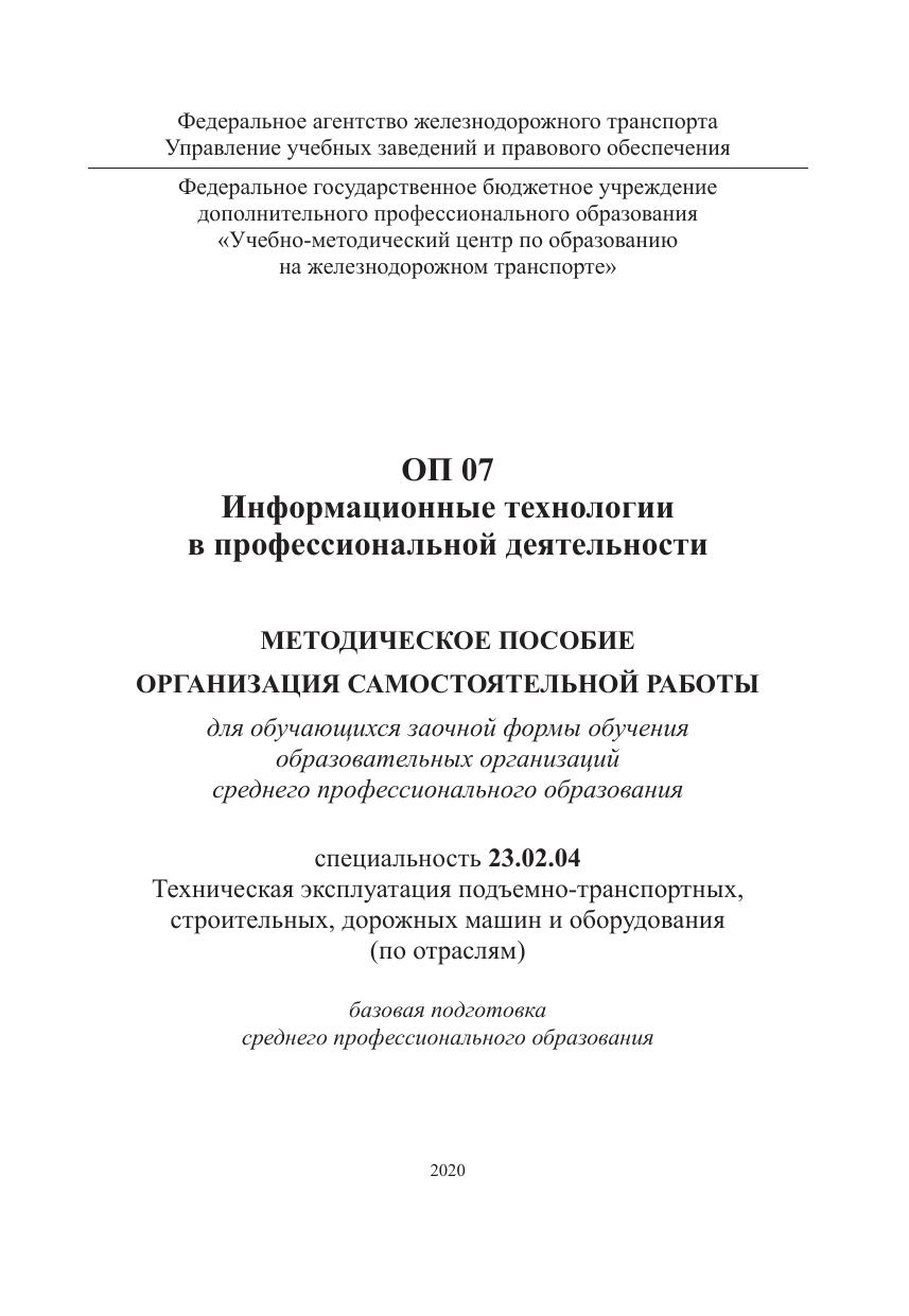 Методическое пособие Организация самостоятельной работы для обучающихся заочной формы обучения образовательных организаций среднего профессионального образования ОП 07 Информационные технологии в профессиональной деятельности