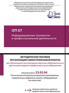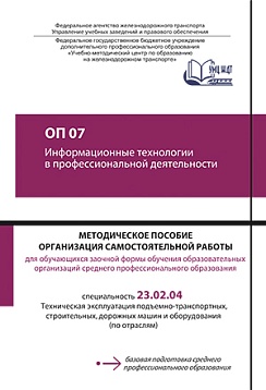 Протопопова, Н.С. Методическое пособие Организация самостоятельной работы для обучающихся заочной формы обучения образовательных организаций среднего профессионального образования ОП 07 Информационные технологии в профессиональной деятельности : методическое пособие / Н. С. Протопопова. — Москва : ФГБУ ДПО «Учебно методический центр по образованию на железнодорожном транспорте», 2020. — 44 с. — Текст : электронный // УМЦ ЖДТ : электронная библиотека. — URL: https://umczdt.ru/books/1228/239697/ (дата обращения 17.04.2026). — Режим доступа: по подписке.