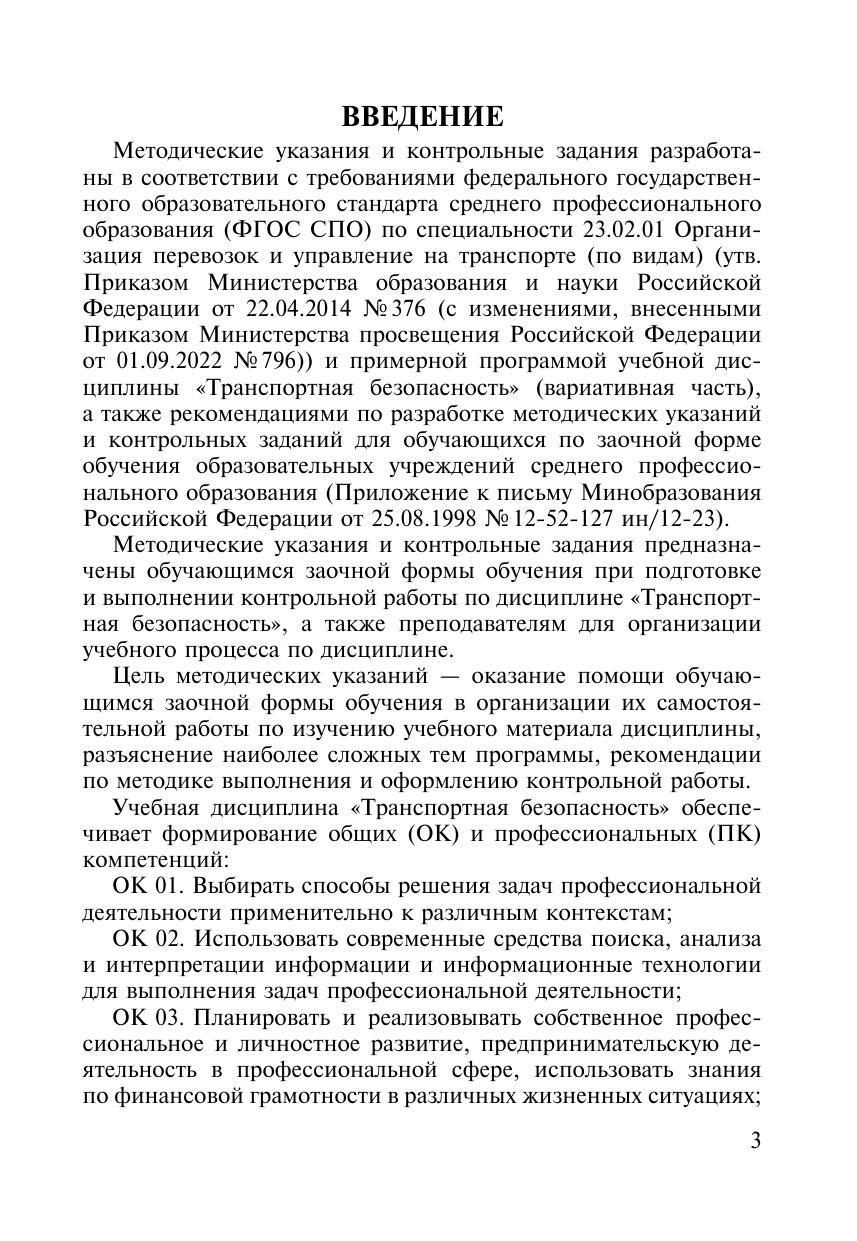 Методические указания и контрольные задания для обучающихся заочной формы обучения образовательных организаций среднего профессионального образования по учебной дисциплине Транспортная безопасность (вариативная часть)