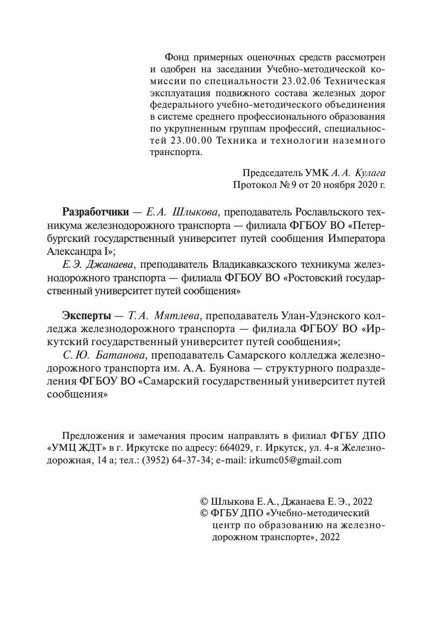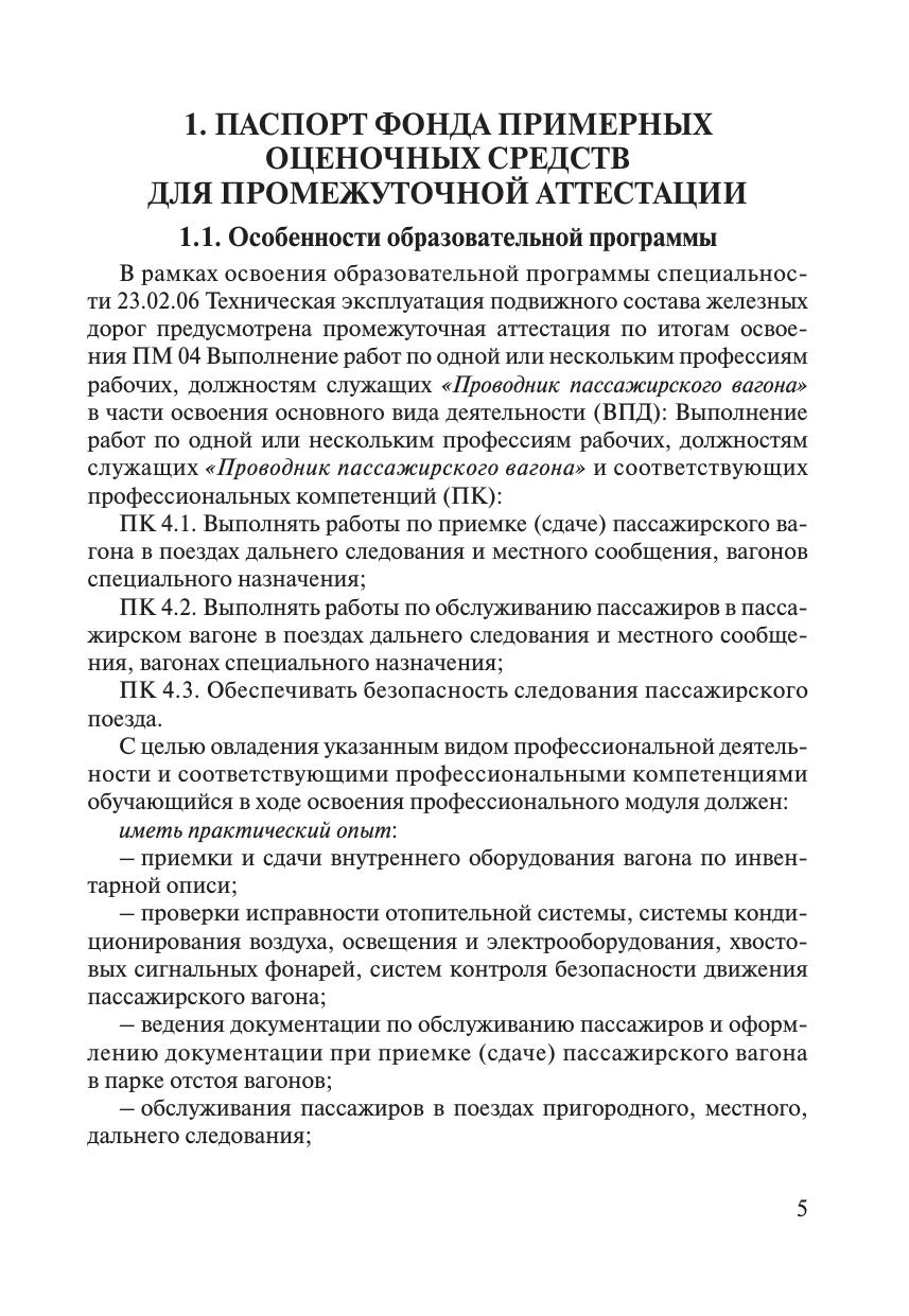 Шлыкова, Е.А. Фонд примерных оценочных средств для проведения промежуточной аттестации в форме демонстрационного экзамена ПМ О4 Выполнение работ по одной или нескольким профессиям рабочих, должностям служащих Проводник пассажирского вагона : / Е. А. Шлыкова, Е. Э. Джанаева. — Москва : УМЦ ЖДТ, 2022. — 125 с. — Текст : электронный // УМЦ ЖДТ : электронная библиотека. — URL: https://umczdt.ru/books/1232/260503/ (дата обращения 21.01.2026). — Режим доступа: по подписке.