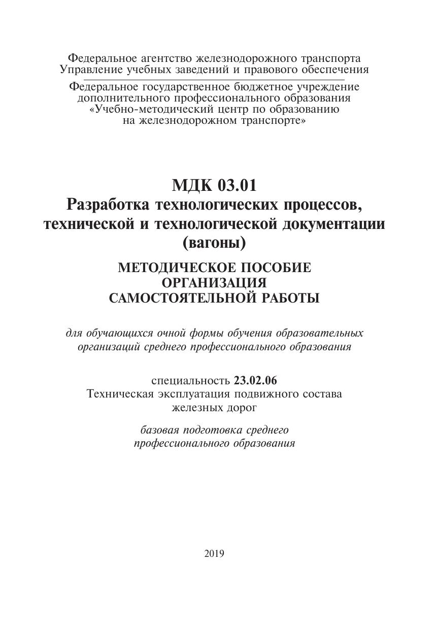 МДК 03.01 Разработка технологических процессов, технической и технологической документации (вагоны). МП "Организация самостоятельной работы"