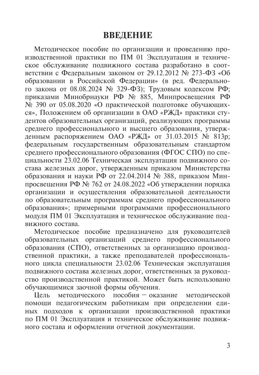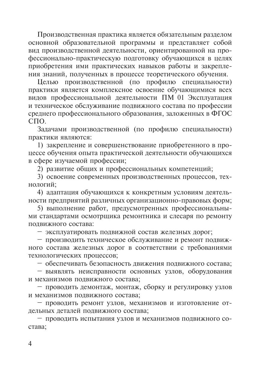 Методическое пособие предназначено для педагогических работников ОО СПО. Цель пособия – оказание помощи при определении единых подходов к организации производственной практики по ПМ 01 Эксплуатация и техническое обслуживание подвижного состава и оформлении отчетной документации.