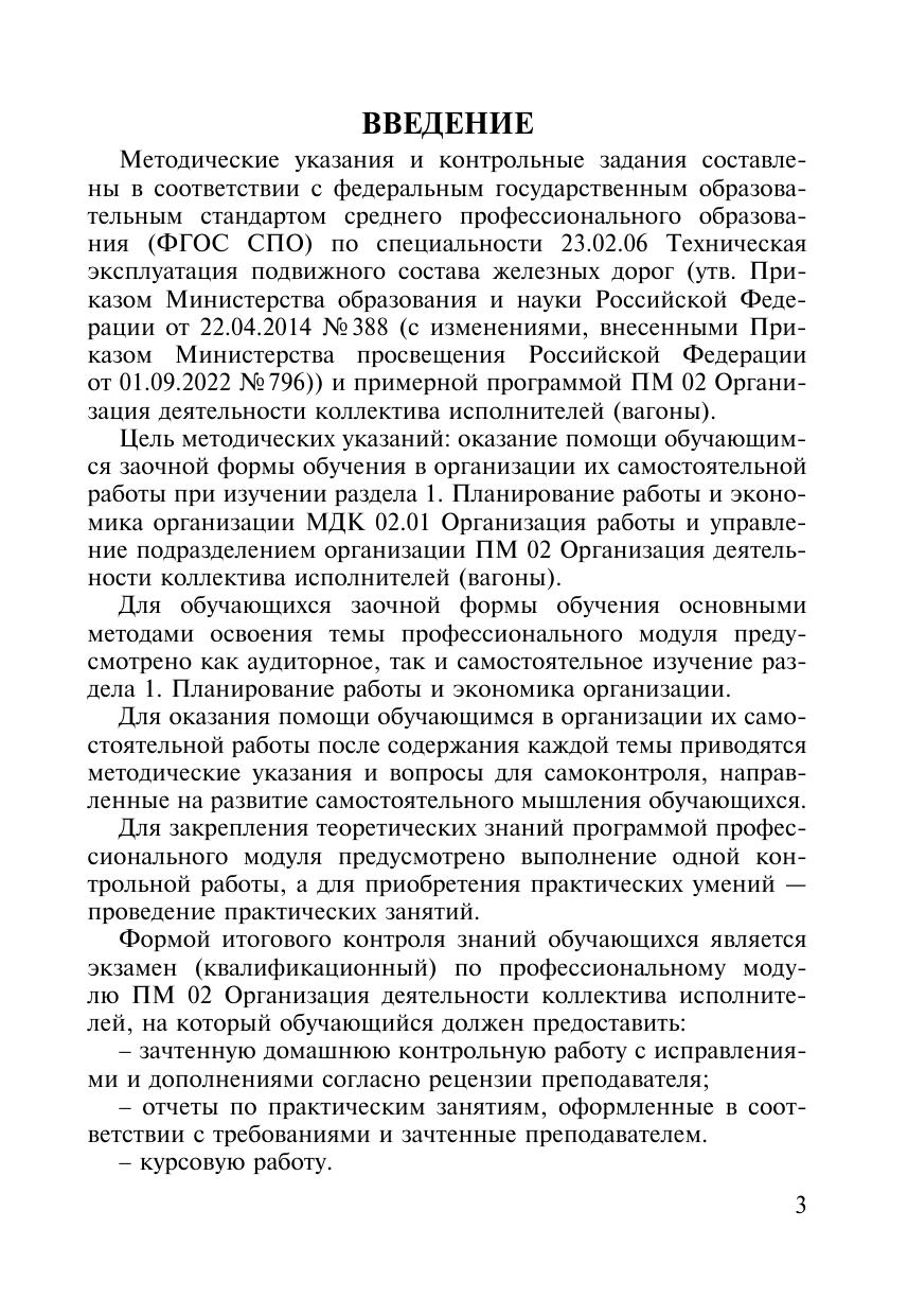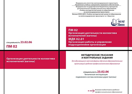 Иванова, В.Ю. Методические указания и контрольные задания для обучающихся заочной формы обучения образовательных организаций среднего профессионального образования ПМ 02 Организация деятельности коллектива исполнителей (вагоны) МДК 02.01 Организация работы и управление : методическое пособие / В. Ю. Иванова. — Москва : УМЦ ЖДТ, 2026. — 32 с. — Текст : электронный // УМЦ ЖДТ : электронная библиотека. — URL: https://umczdt.ru/books/1233/300730/ (дата обращения 17.04.2026). — Режим доступа: по подписке.