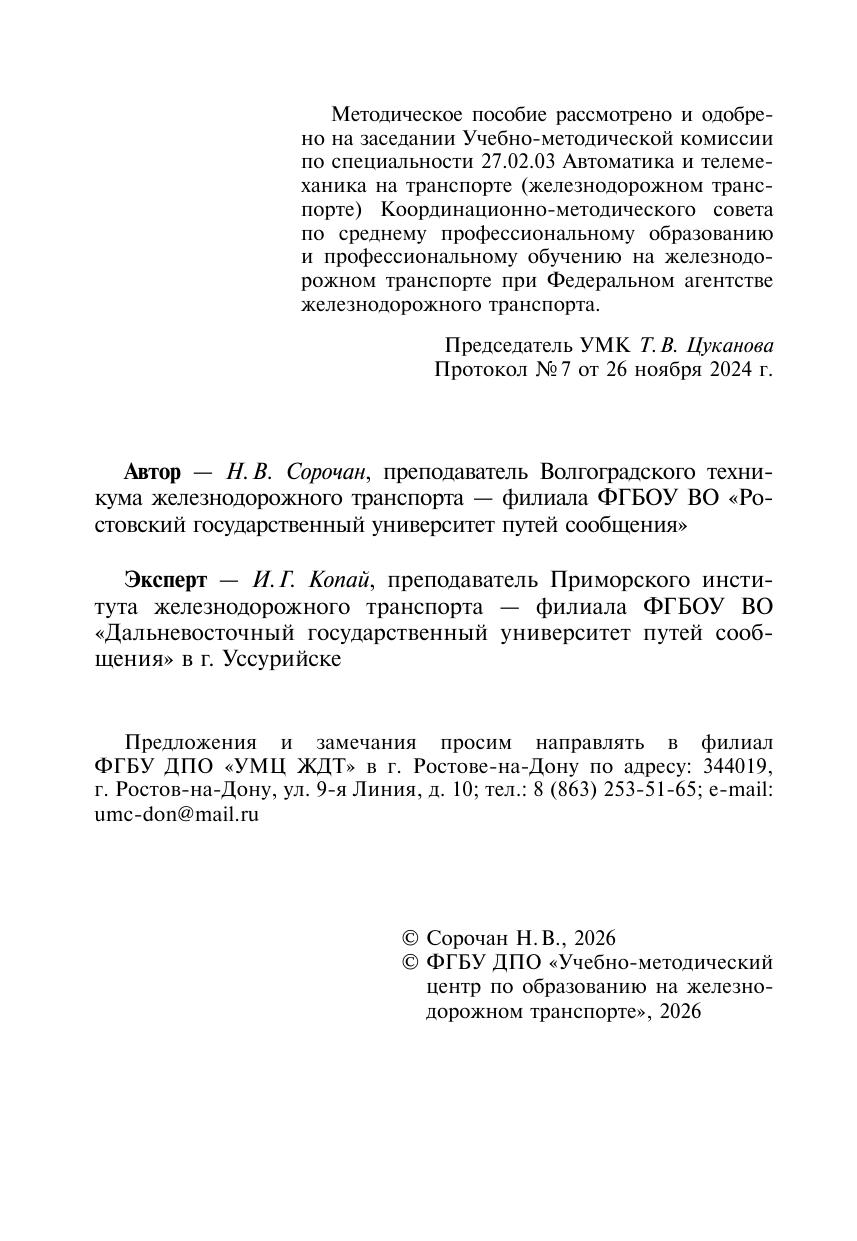 Сорочан, Н.В. Методическое пособие по подготовке к промежуточной аттестации для обучающихся заочной формы обучения образовательных организаций среднего профессионального образования ОП 02 Электротехника : монография / Н. В. Сорочан. — Москва : УМЦ ЖДТ, 2026. — 128 с. — Текст : электронный // УМЦ ЖДТ : электронная библиотека. — URL: https://umczdt.ru/books/1236/300686/ (дата обращения 01.05.2026). — Режим доступа: по подписке.